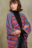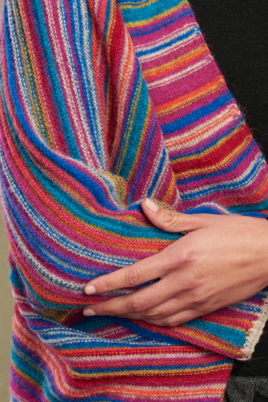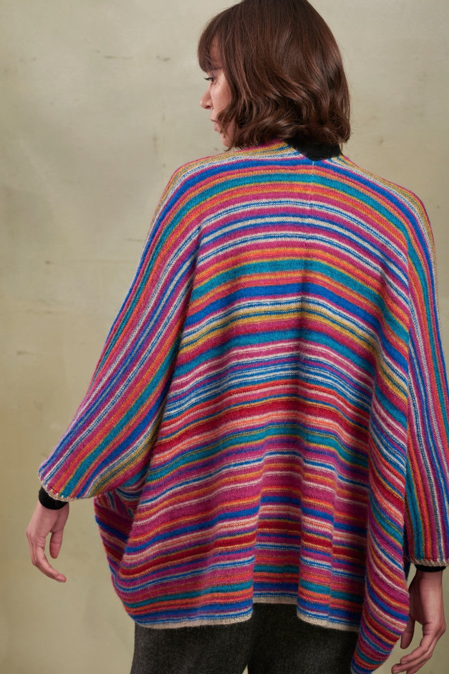 Our baby alpaca Random poncho, with its cleverly combined colours, features an excellent drop with an opening.