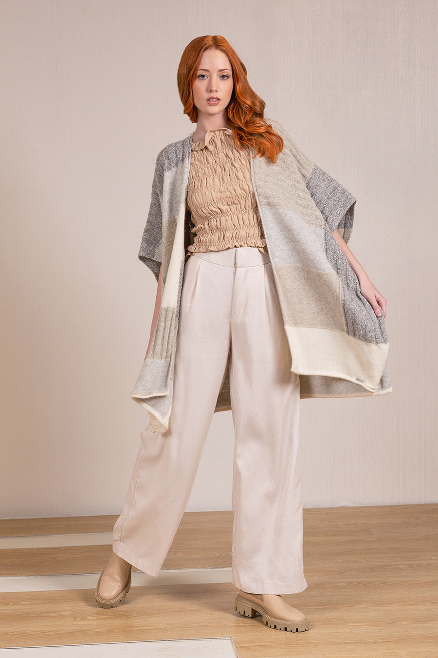 Our Valparaiso cape is made of 100% baby alpaca. The flawless drape and rich texture make it a unique garment, great to accentuate your style.