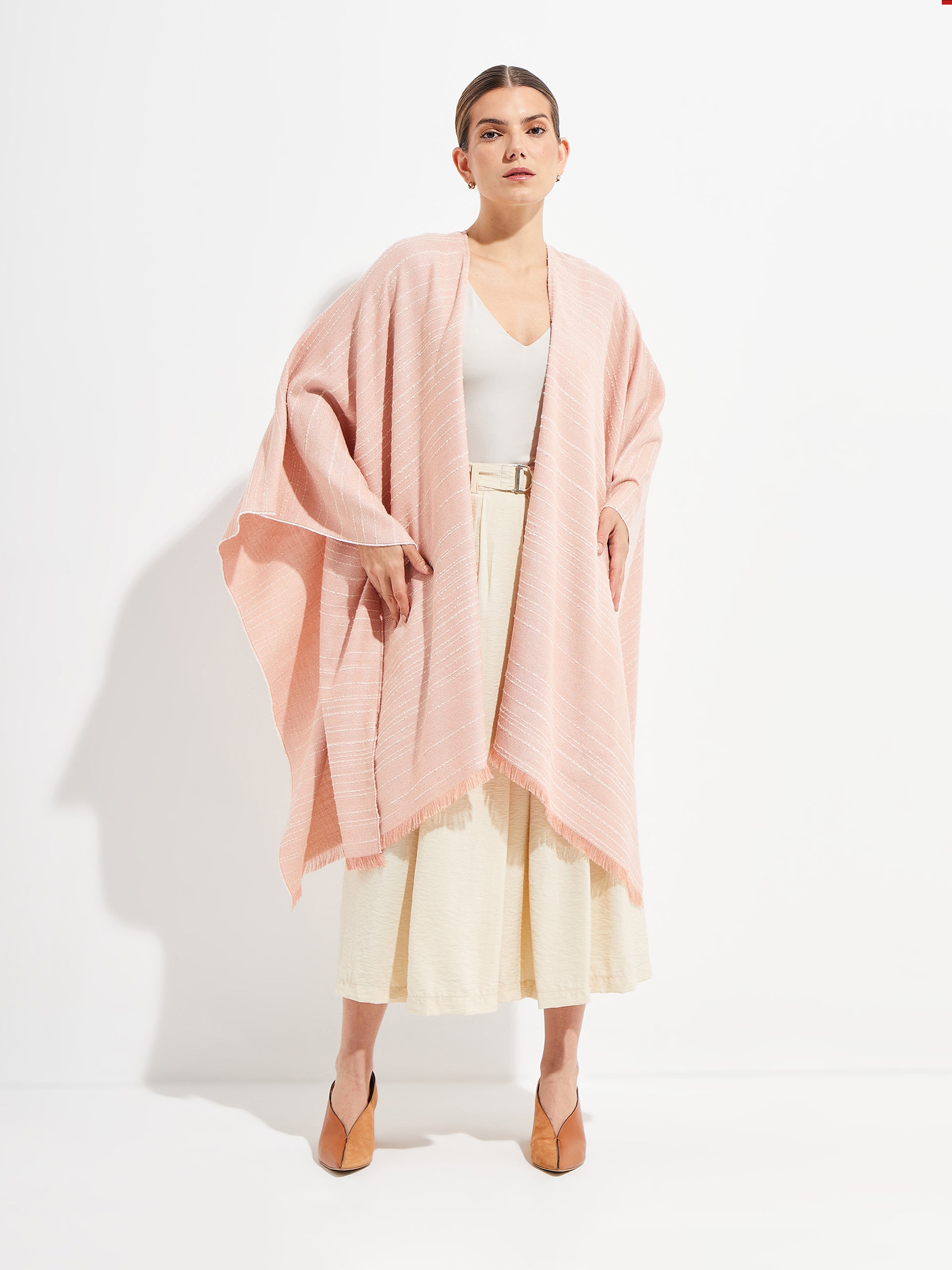 Ygriega es una capa exclusiva elaborada en baby alpaca, seda, bambú y algodón. Su diseño de rayas discretas combina elegancia y suavidad, ofreciendo un equilibrio perfecto entre calidez y ligereza. La mezcla de materiales brinda confort y frescura, haciéndola ideal para ocasiones especiales o el día a día con un toque sofisticado. | Material predominante: Algodon