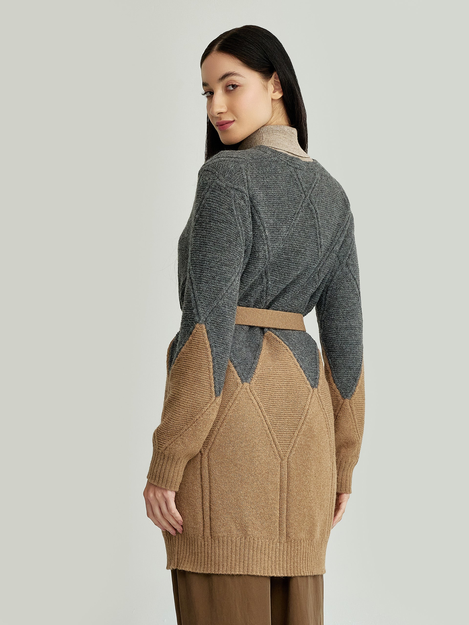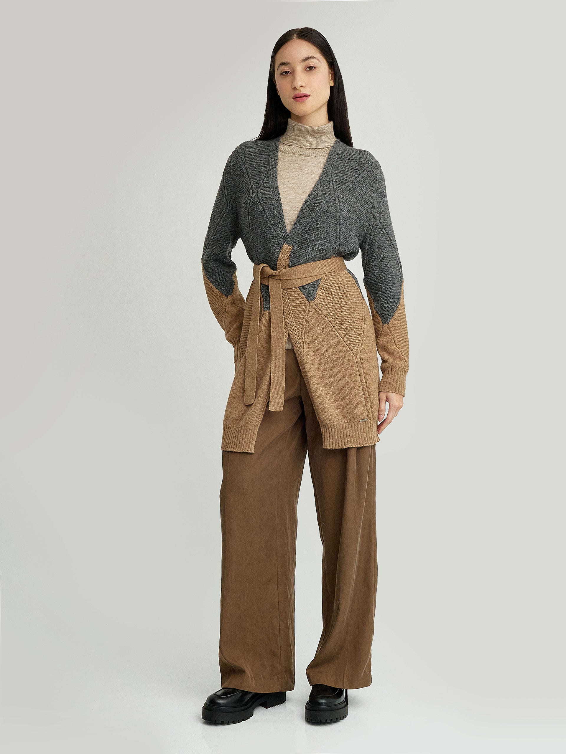 El cárdigan Yelissa se convertirá en tu prenda indispensable esta temporada. Con colores que combinan sobriedad y modernidad, es ideal para cualquier momento. Versátil y elegante, complementa cualquier conjunto y te mantiene a la moda en cualquier ocasión. Elaborado con 100% baby alpaca y con un cinturón añadido para un toque de estilo adicional. | Material predominante: Baby Alpaca