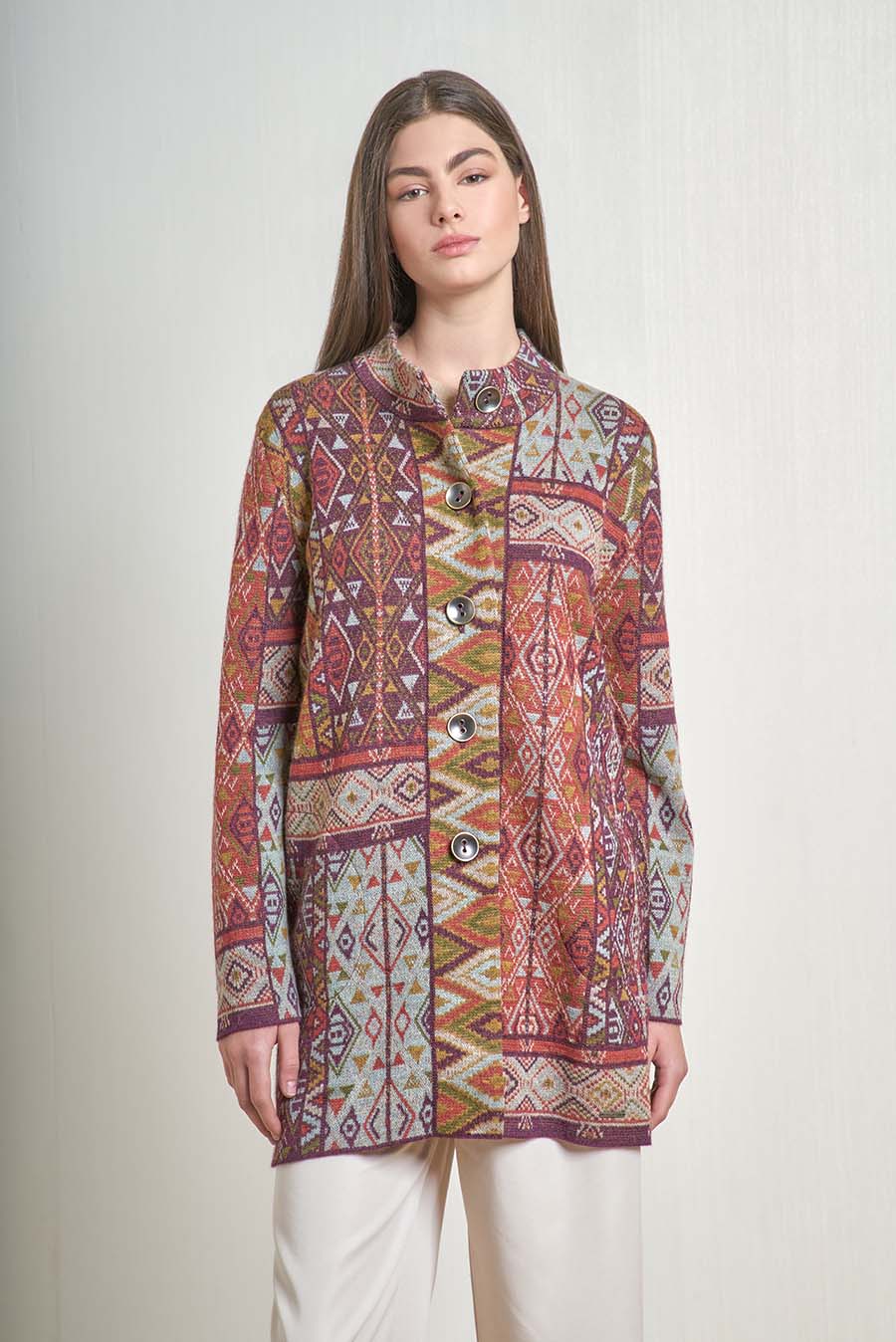 Made of 100% baby alpaca, our Valle cardigan is an alluring piece, perfect for cold days. The tall neck adds sophistication.