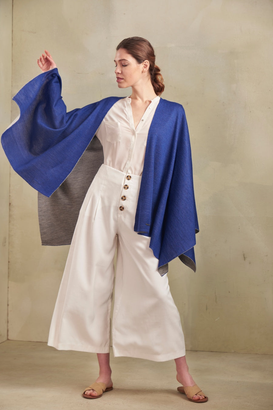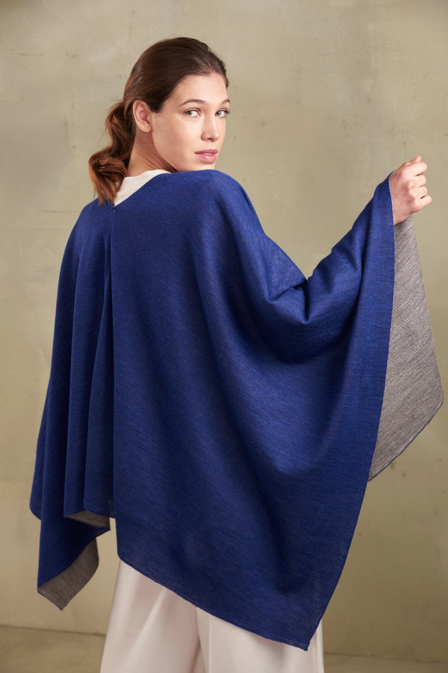 Fineness and sobriety converge in our reversible poncho Temira. It has a unique and captivating style. Available in three combinations.