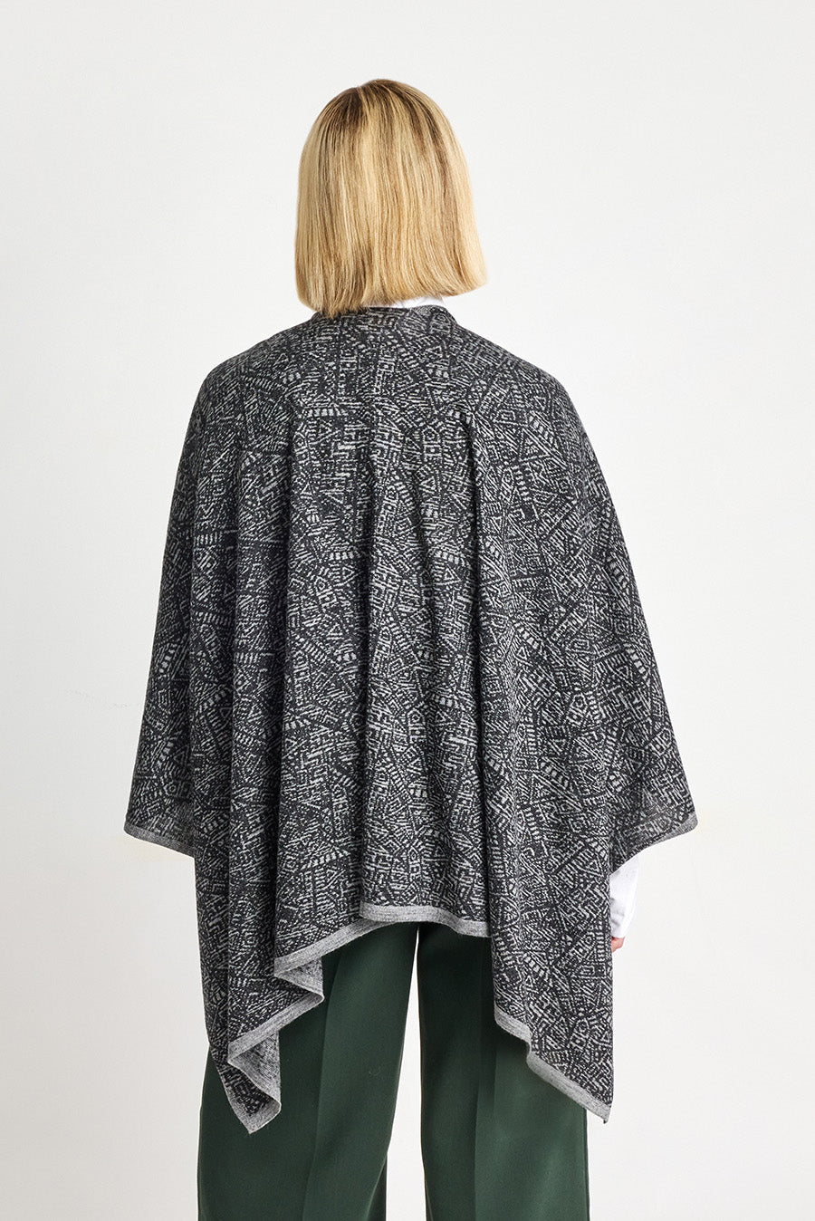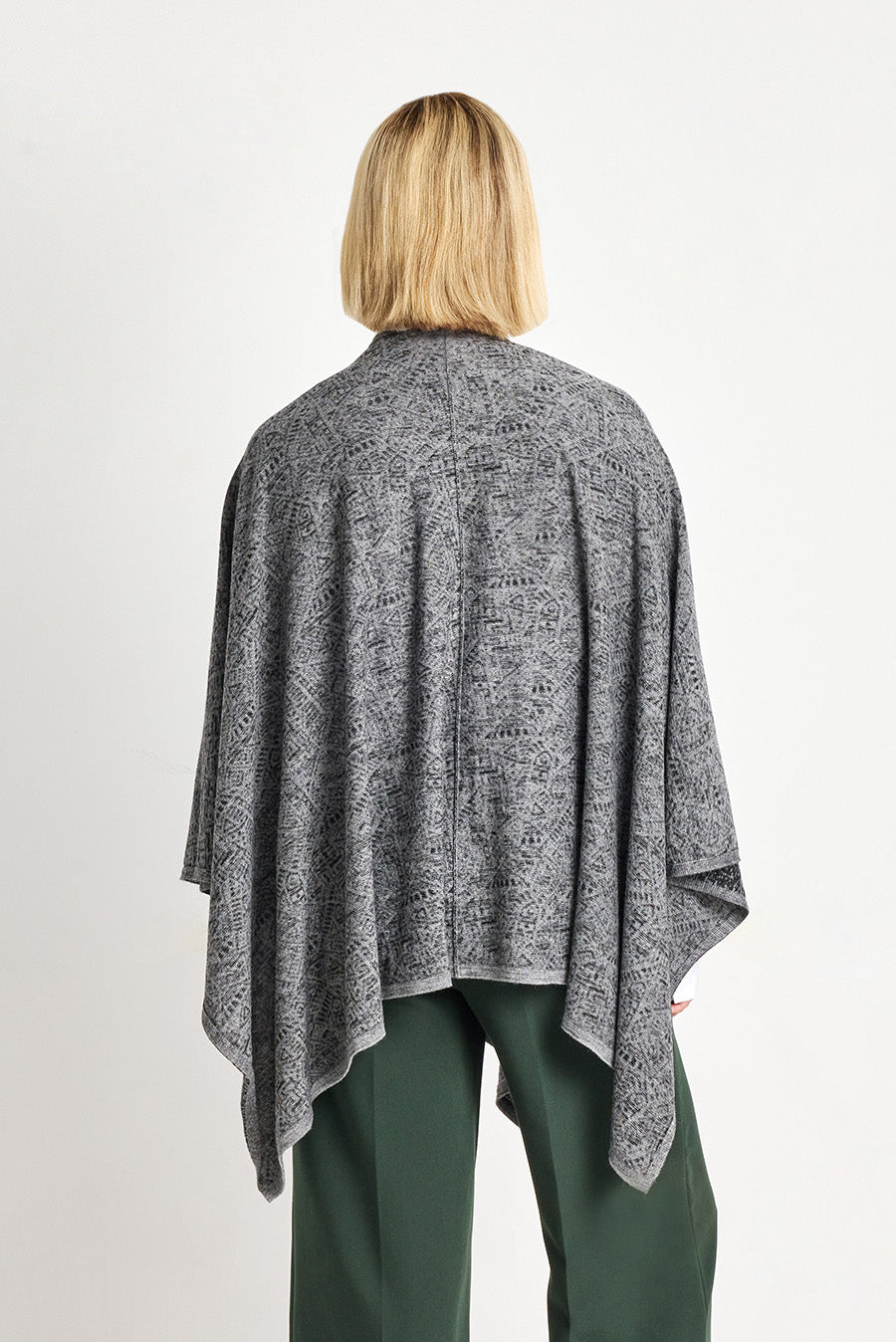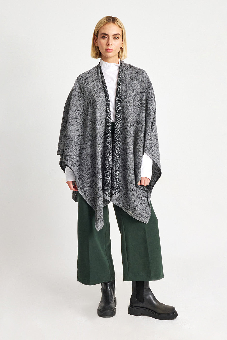 Our reversible Web poncho made from baby alpaca and silk is soft, light and warm. Its length and wide cut allow you to wear it over other garments.
