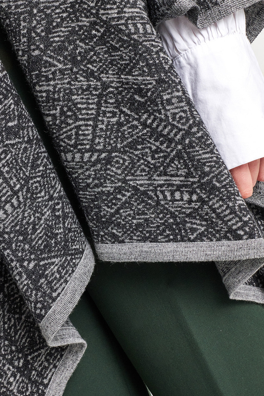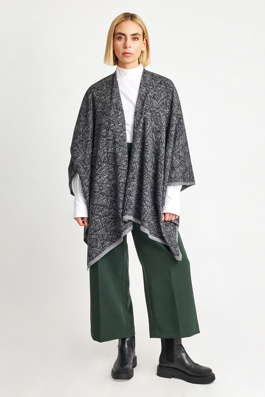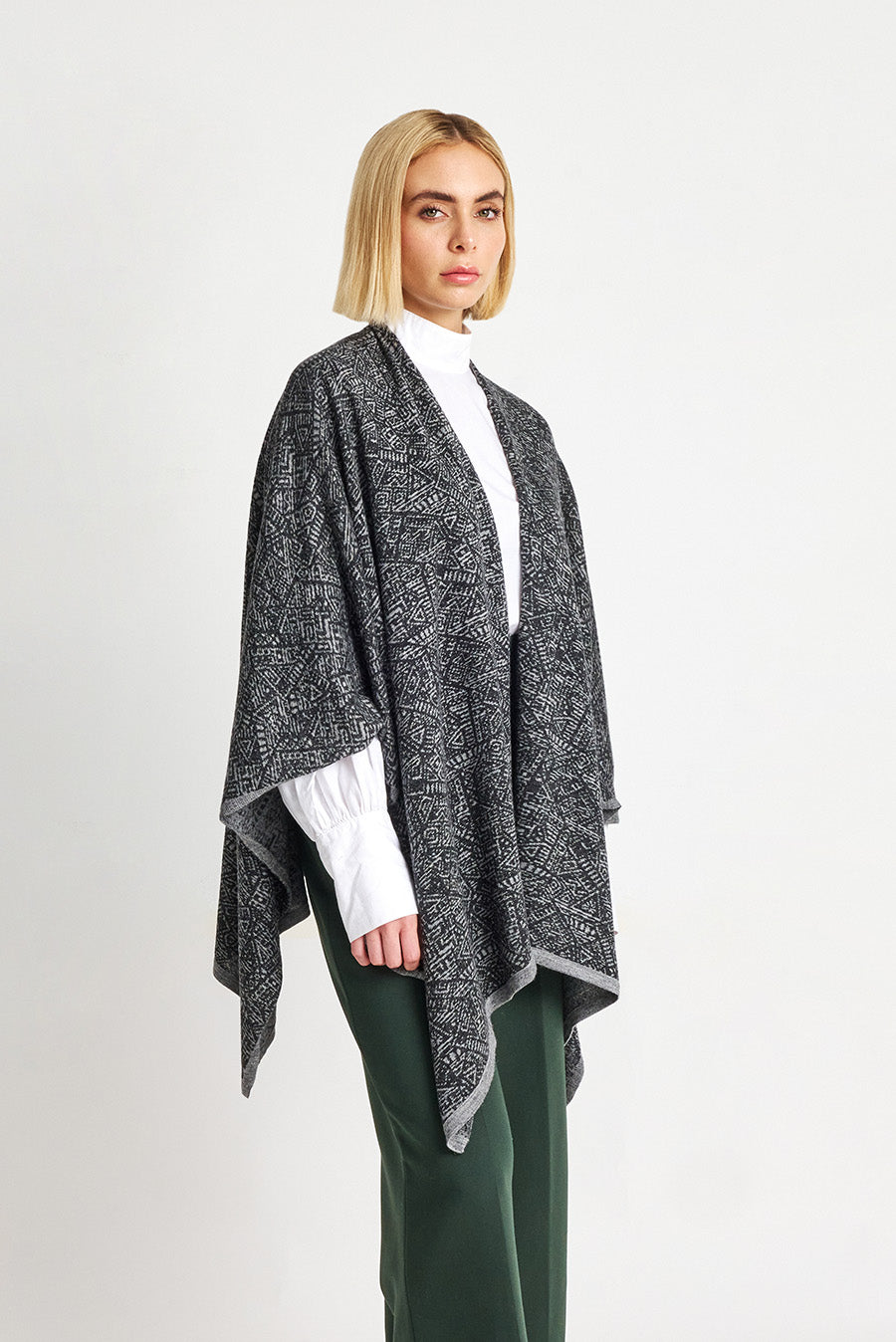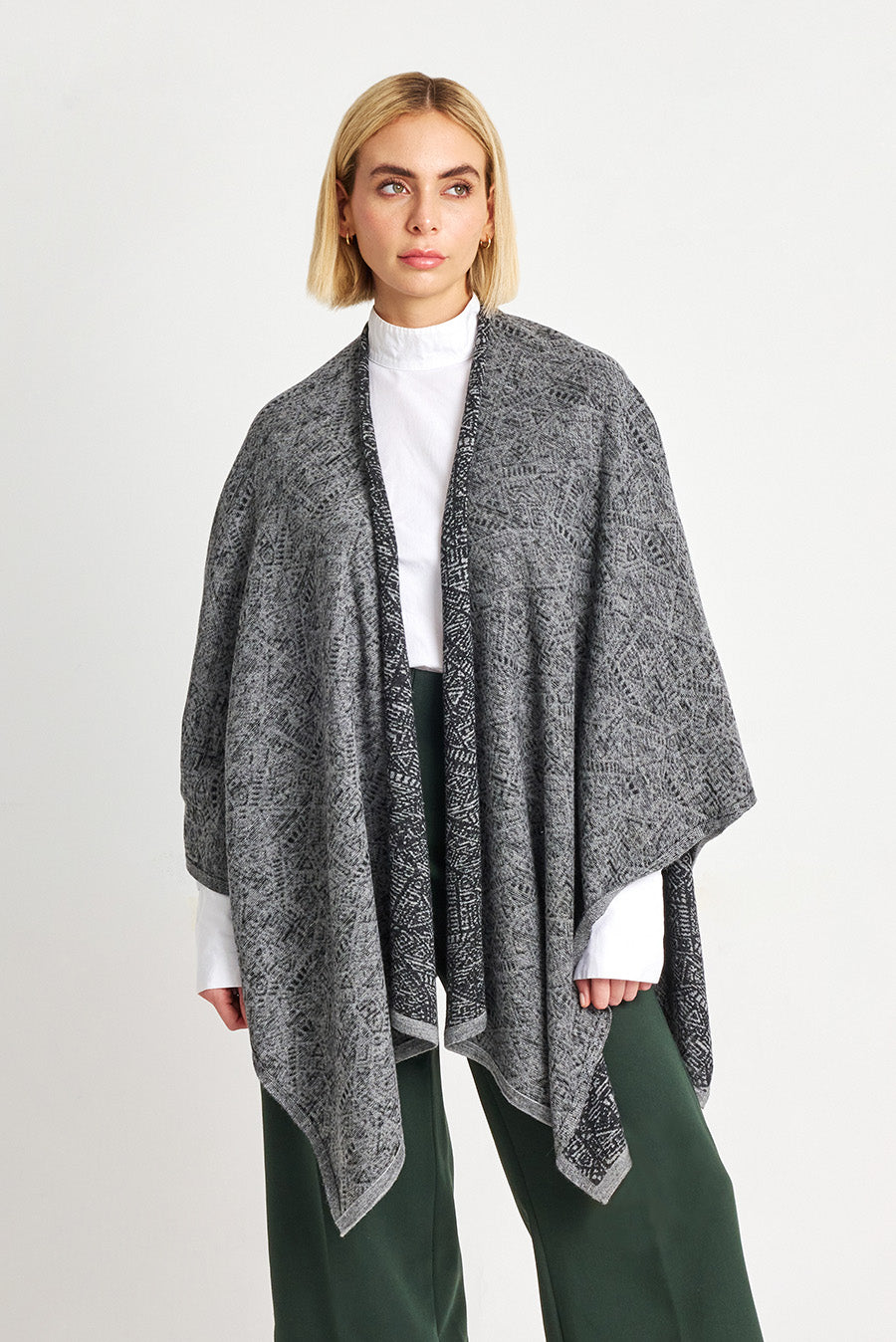 Our reversible Web poncho made from baby alpaca and silk is soft, light and warm. Its length and wide cut allow you to wear it over other garments.