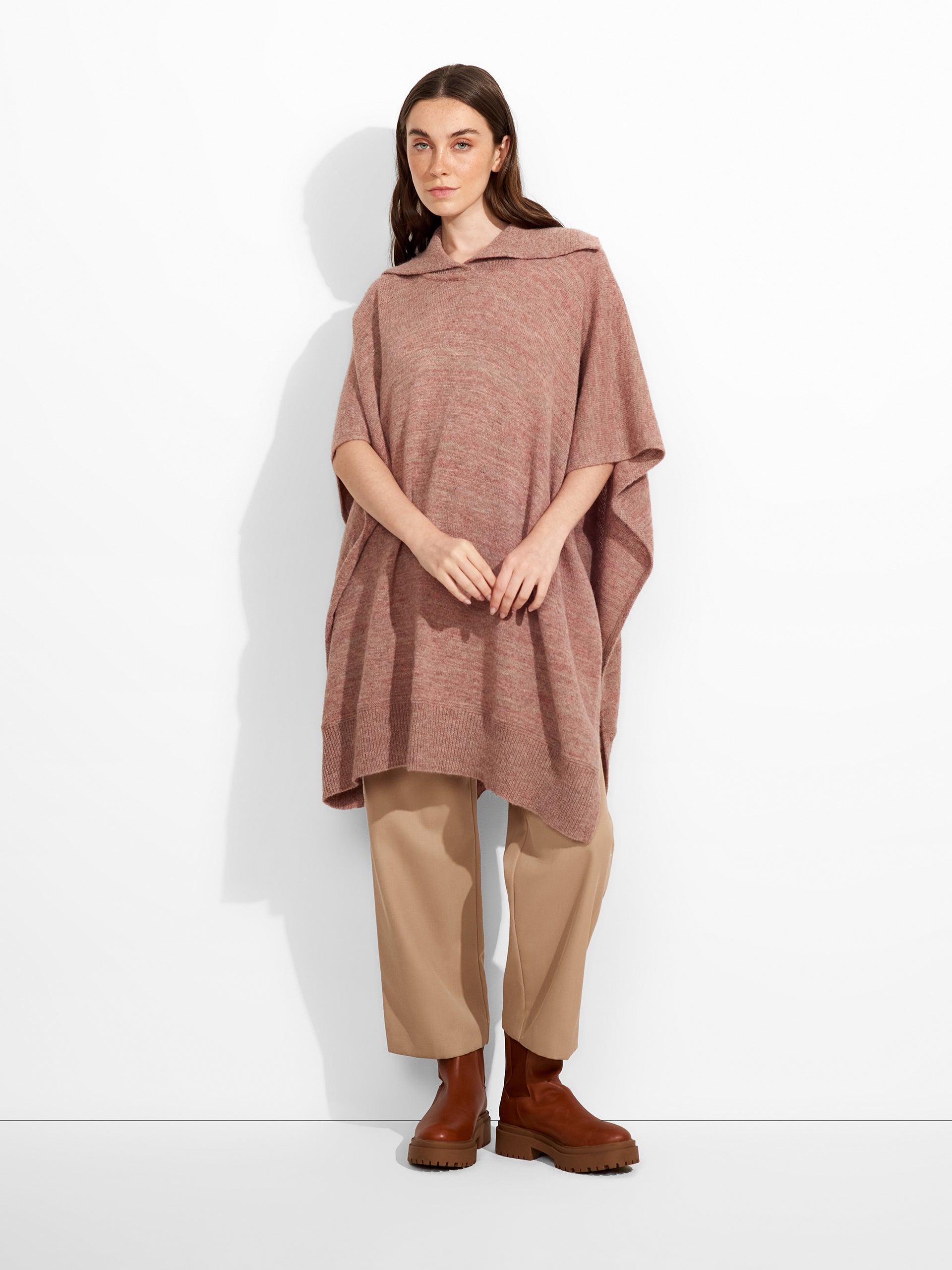 Poncho Zoila en tonalidad rosado, presenta una silueta amplia y diseño abierto en color entero. Confeccionado en baby alpaca, brinda calidez y suavidad. | Material predominante: Baby Alpaca