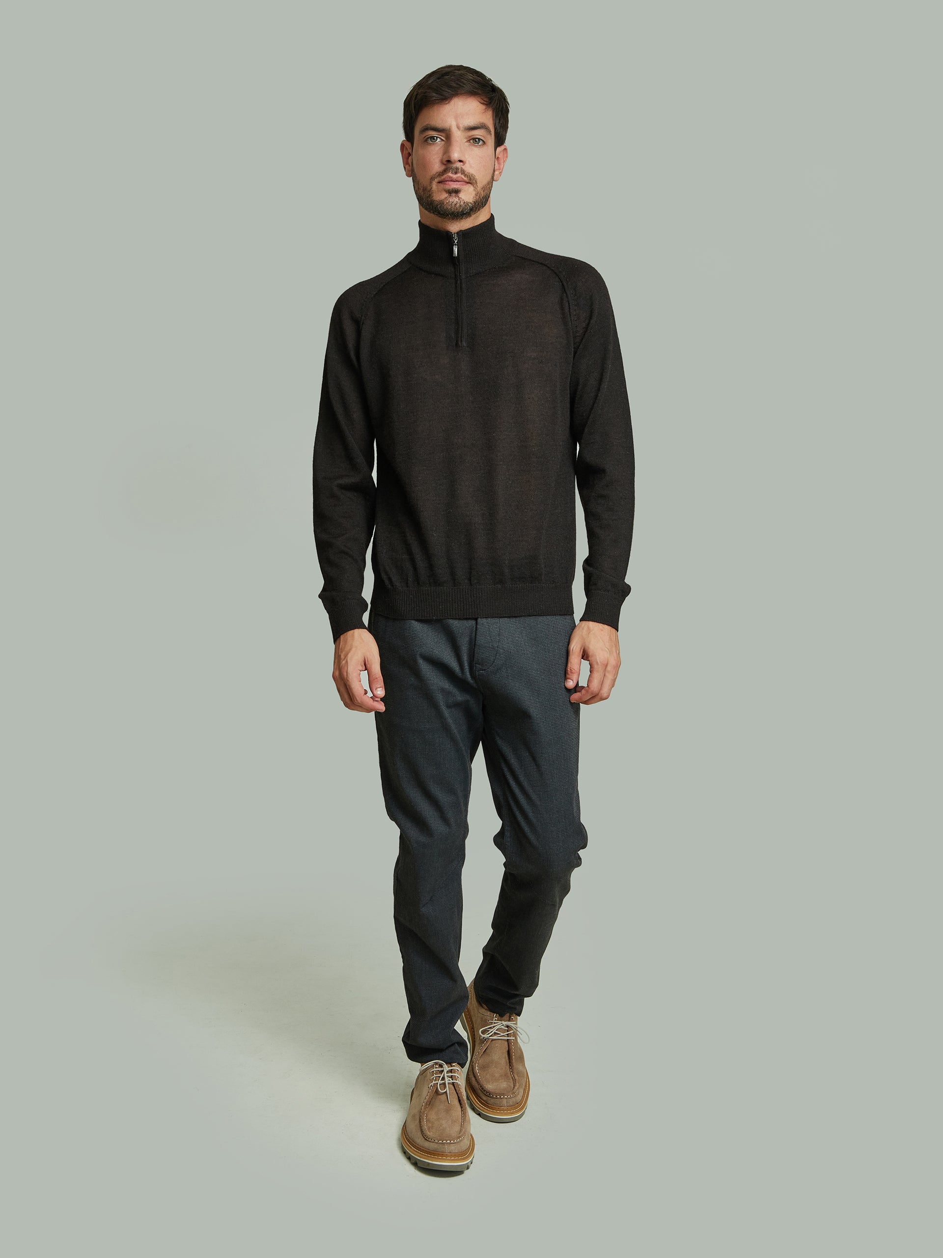The Beatle sweater evokes, through a sophisticated design suits well in a casual or elegant style. The exclusive Black Alpaka collection has been made with natural black alpaca fiber, that has not been exposed to any dyeing process. It symbolizes the commitment that we make together with Pacomarca for the conservation of pure black alpacas, now endangered.
