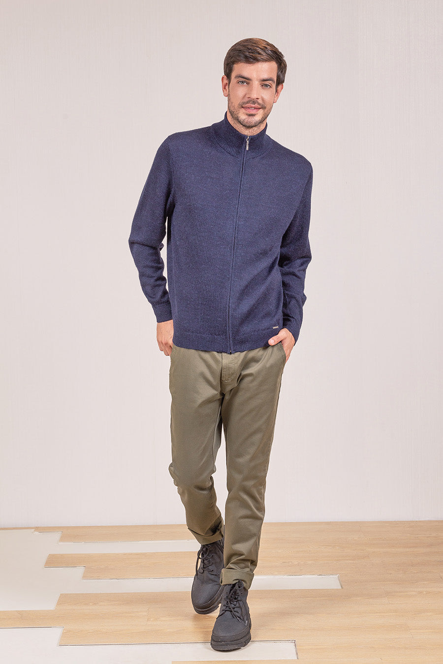 Cardigan for men made of 100% baby alpaca, can be used as a sweater or also as a jacket, thanks to the zipper it has. This garment is within the range of essential items that can be used all year round.