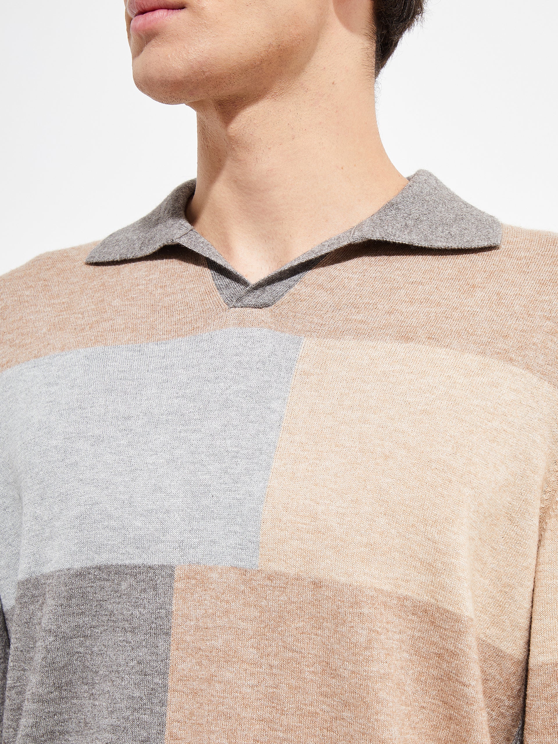 El suéter Ivan, con cuello tipo camisero y diseño a cuadros de colores, está elaborado en algodón orgánico y baby alpaca para una suavidad superior. Cuenta con pretina en la cintura y puños para un ajuste perfecto. Disponible en dos combinaciones de colores, es ideal para un look casual y moderno. | Material predominante: Algodon