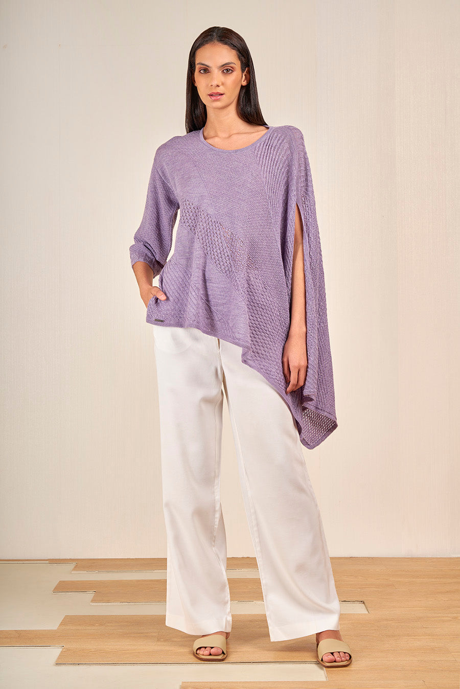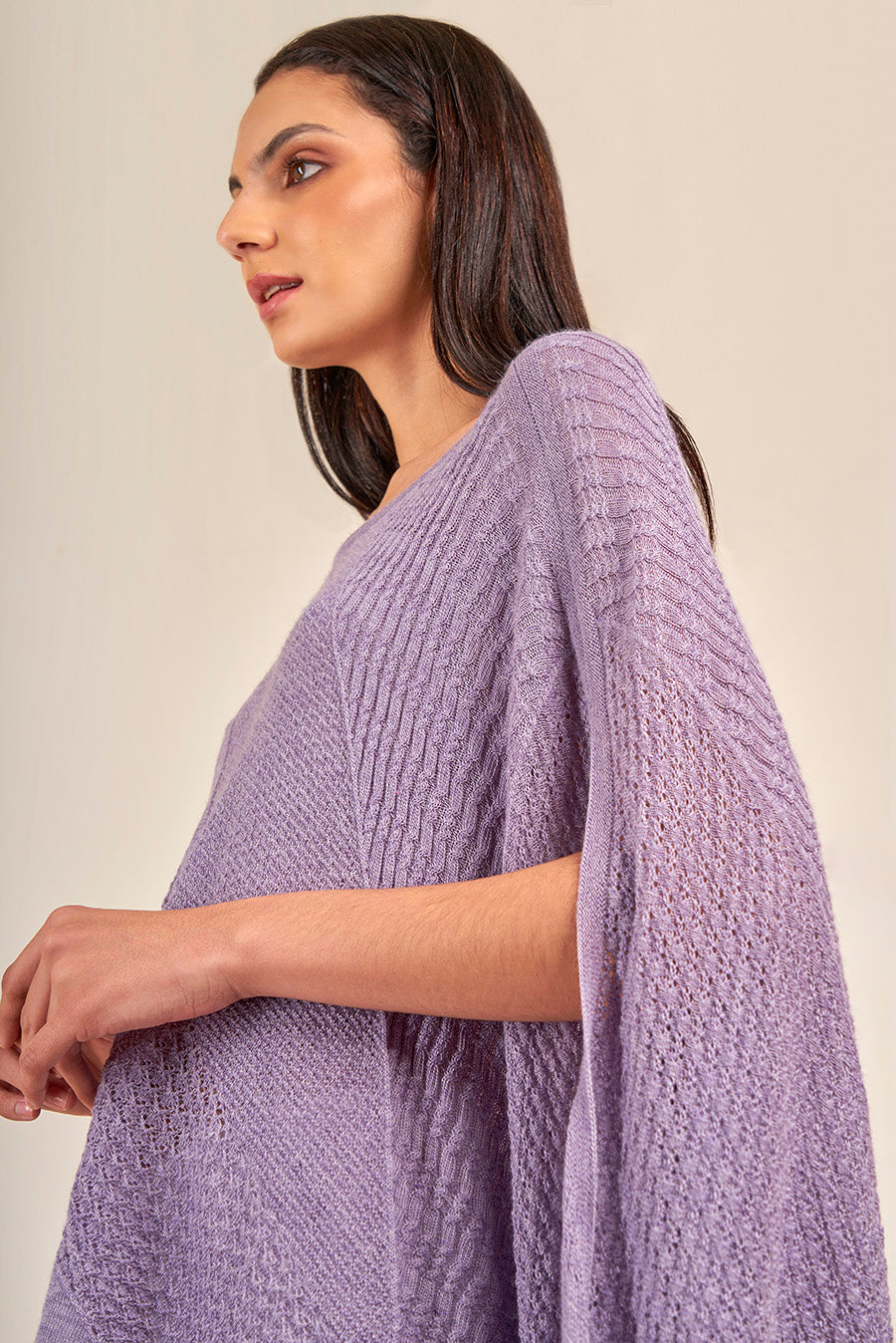 Our exclusive Vous poncho is made of the finest baby alpaca and silk fibres. The asymmetrical silhouette and pretty details make it the perfect piece to accentuate your style.