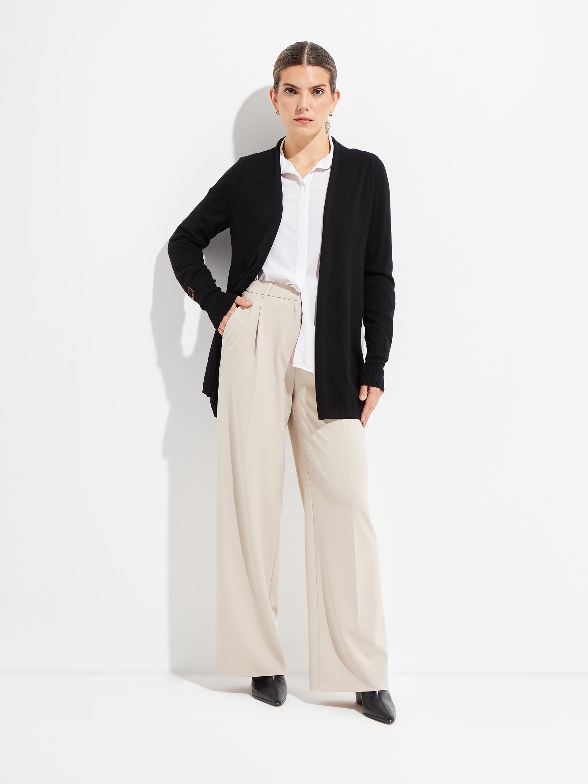 Vicuña cardigan worked in knitted fabric, the most exclusive fibre in the world. Light and soft, this garment is particularly flattering due to its relaxed silhouette and unique drape. A piece that can be perfectly adapted to your style.