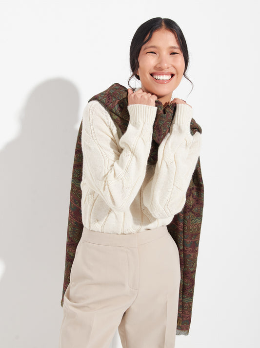 Light baby alpaca and silk pashmina. Sober geometric designs inspired by the AFROPERU collection, ideal...
