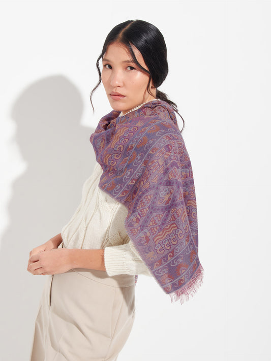 Estola Teaberry en tonalidad morado, de color entero, presenta bordes con flecos finos que aportan...