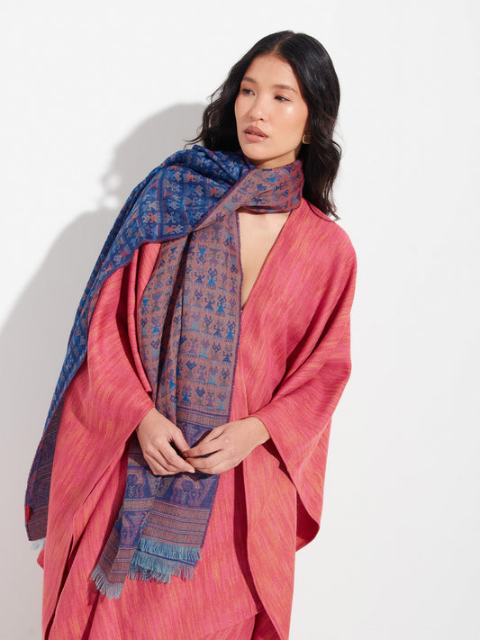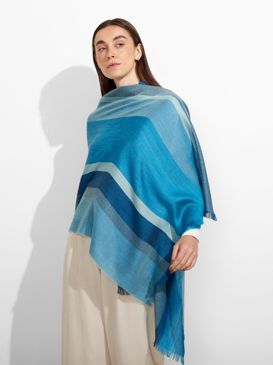 Estola Lambayeque 9 en tonalidad azul, elaborada en 50% Royal alpaca y 50% seda, con...