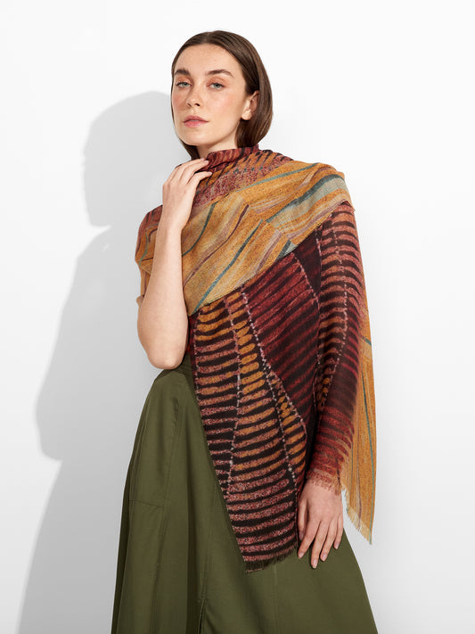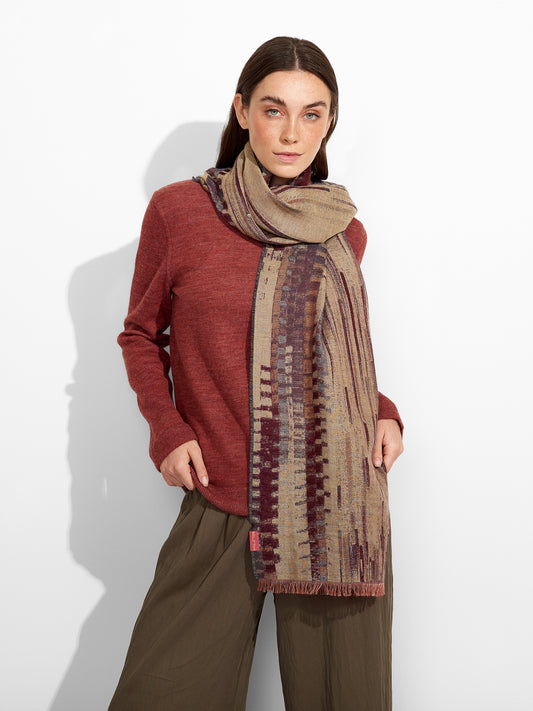 Estola Lambayeque 8 en tonalidad rojo, elaborada en 50% Royal alpaca y 50% seda, con...