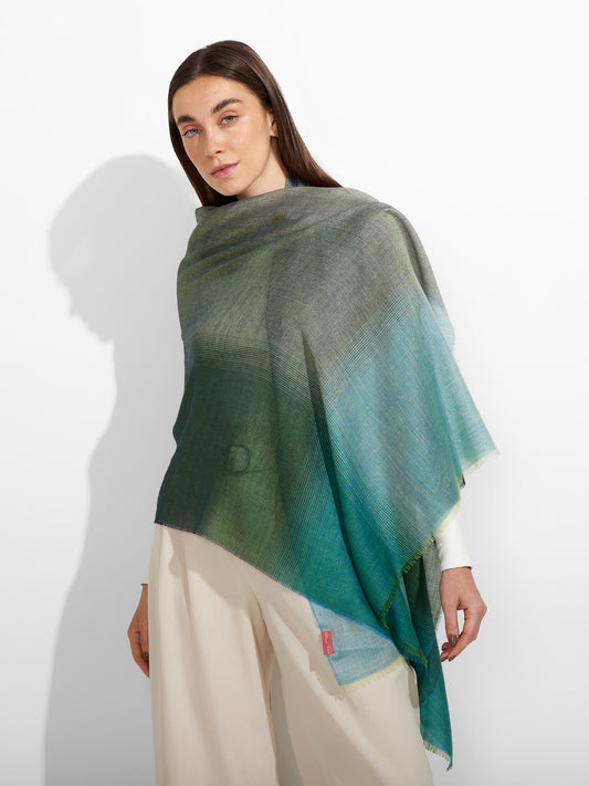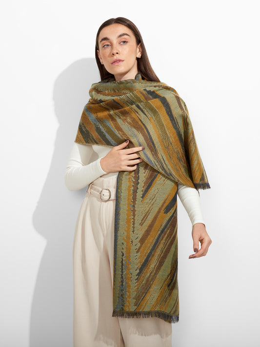 Estola Zane en tonalidad verde, presenta tejido jaquard con un diseño de líneas irregulares y...