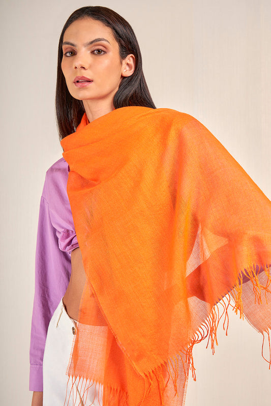 Estola Teaberry en tonalidad naranja, de color entero, presenta bordes con flecos finos que aportan...