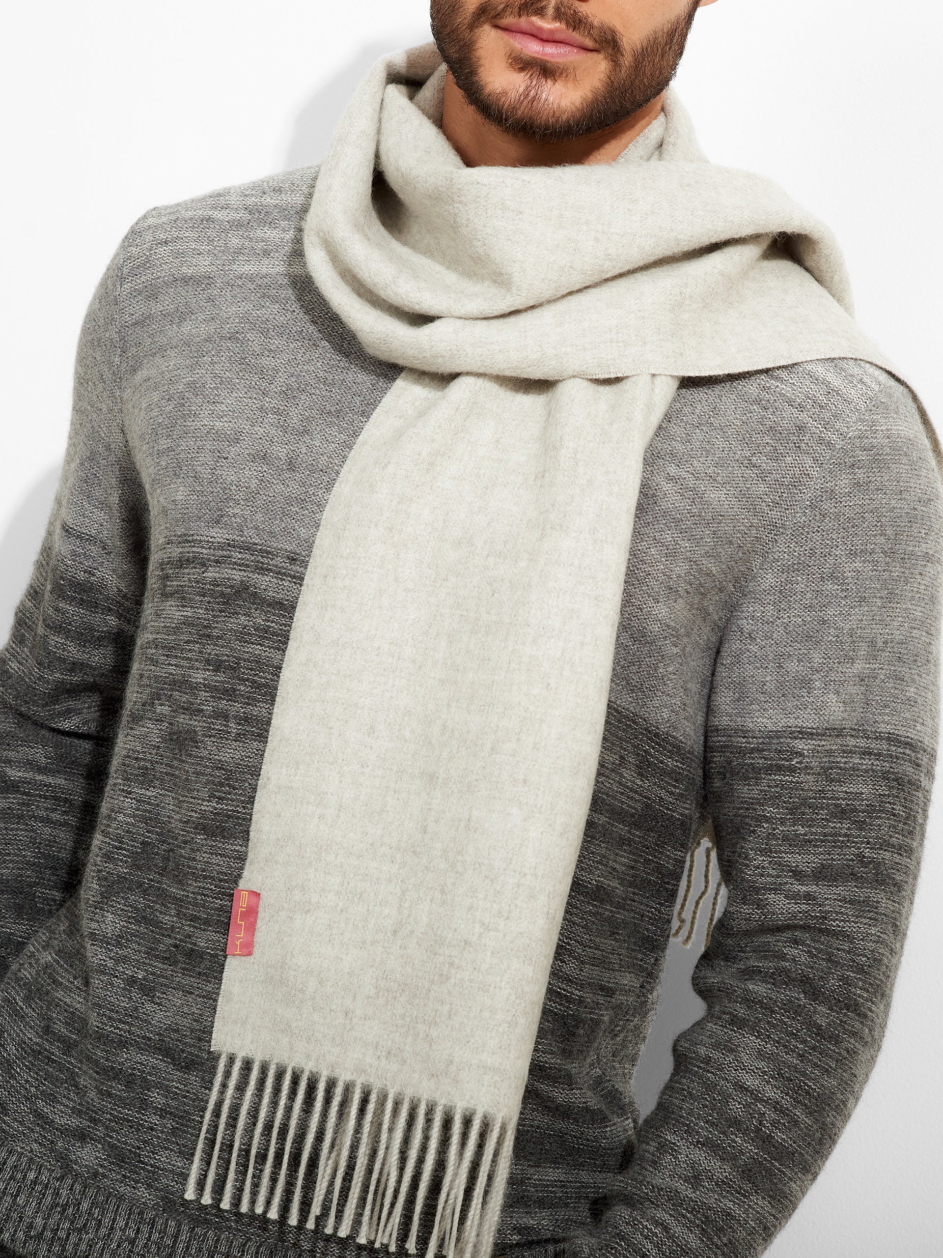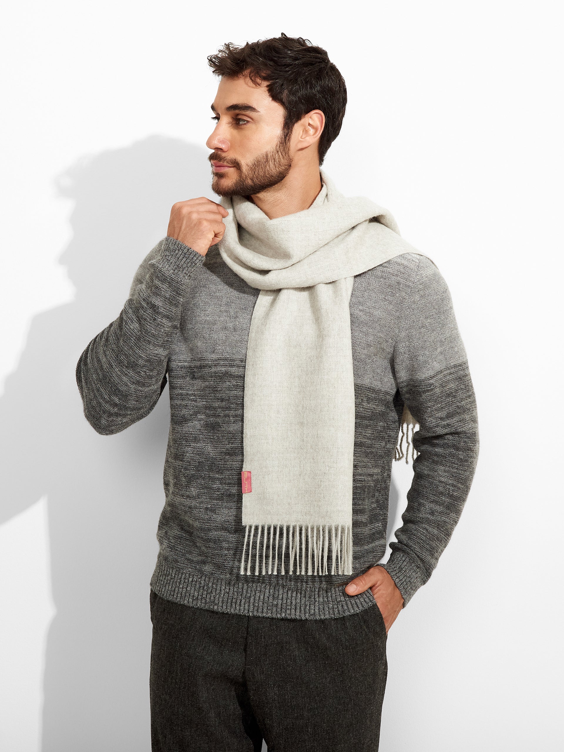 Chalina Recreo en tonalidad gris. Un accesorio elaborado con fibra de color natural, sin teñir. Confeccionada en baby alpaca eco, brinda calidez y suavidad. | Material predominante: Baby Alpaca