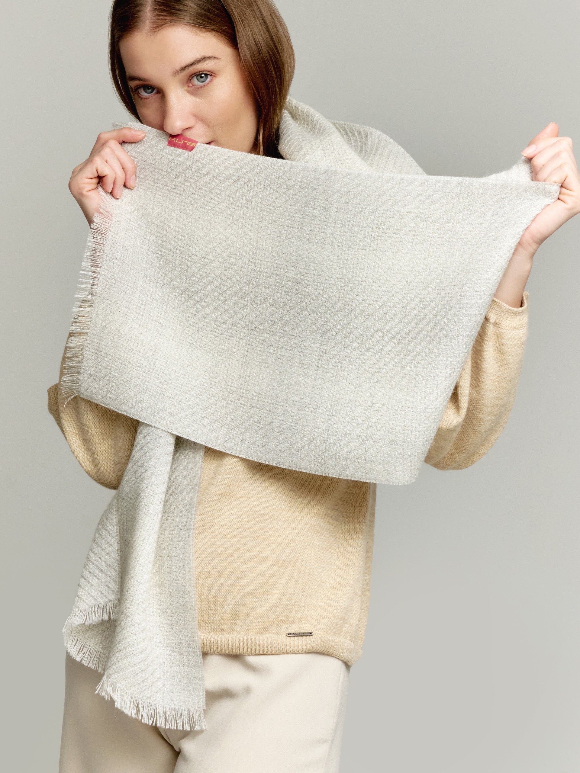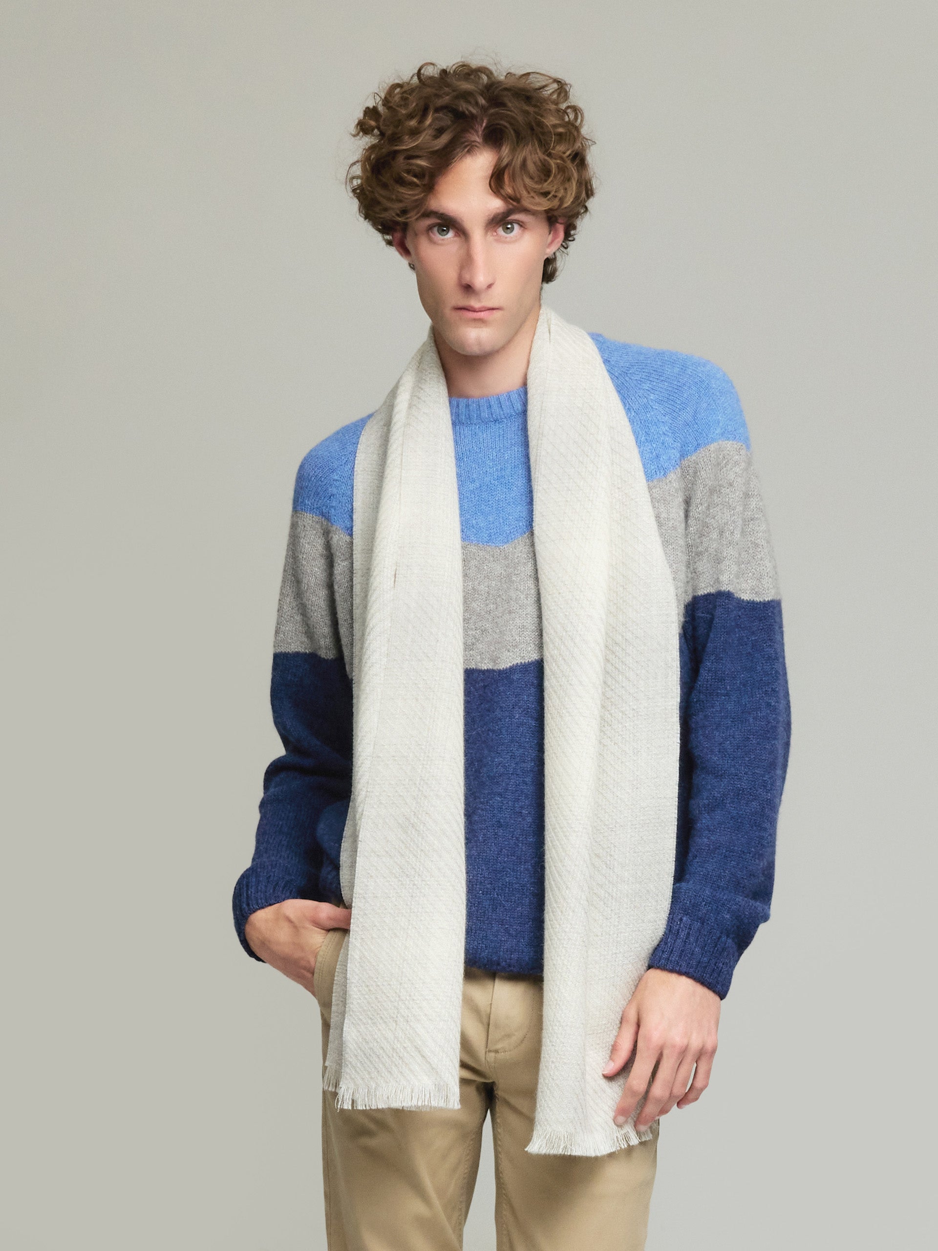 Clásica bufanda de baby alpaca eco. Los flecos son un detalle clásico que puede agregar un toque de elegancia y estilo. Los diseños de cuadros son atemporales y le aportan un toque de sofisticación a la bufanda. Además, los patrones de cuadros son versátiles y pueden adaptarse a una variedad de estilos y preferencias personales. | Material predominante: Baby Alpaca