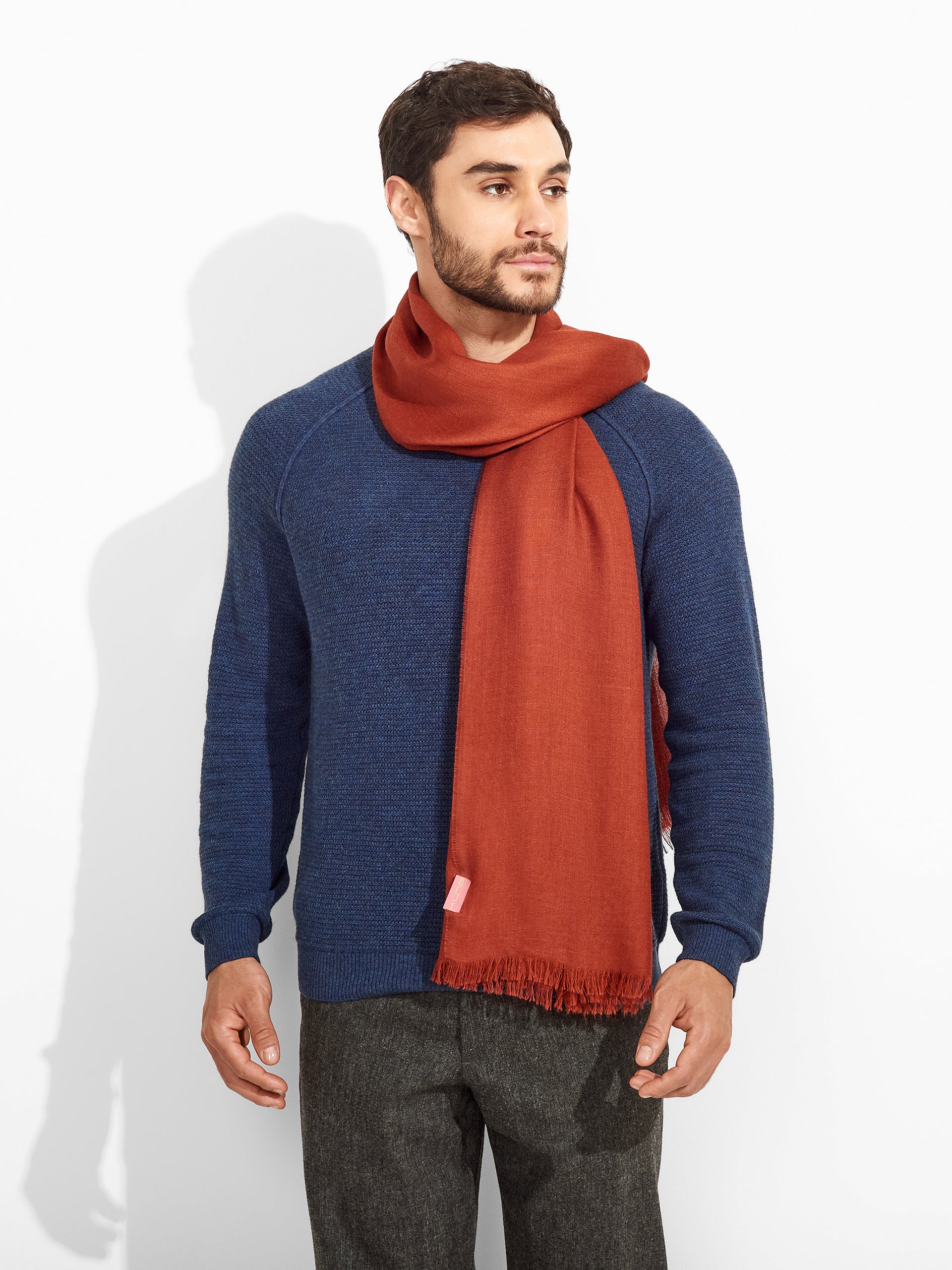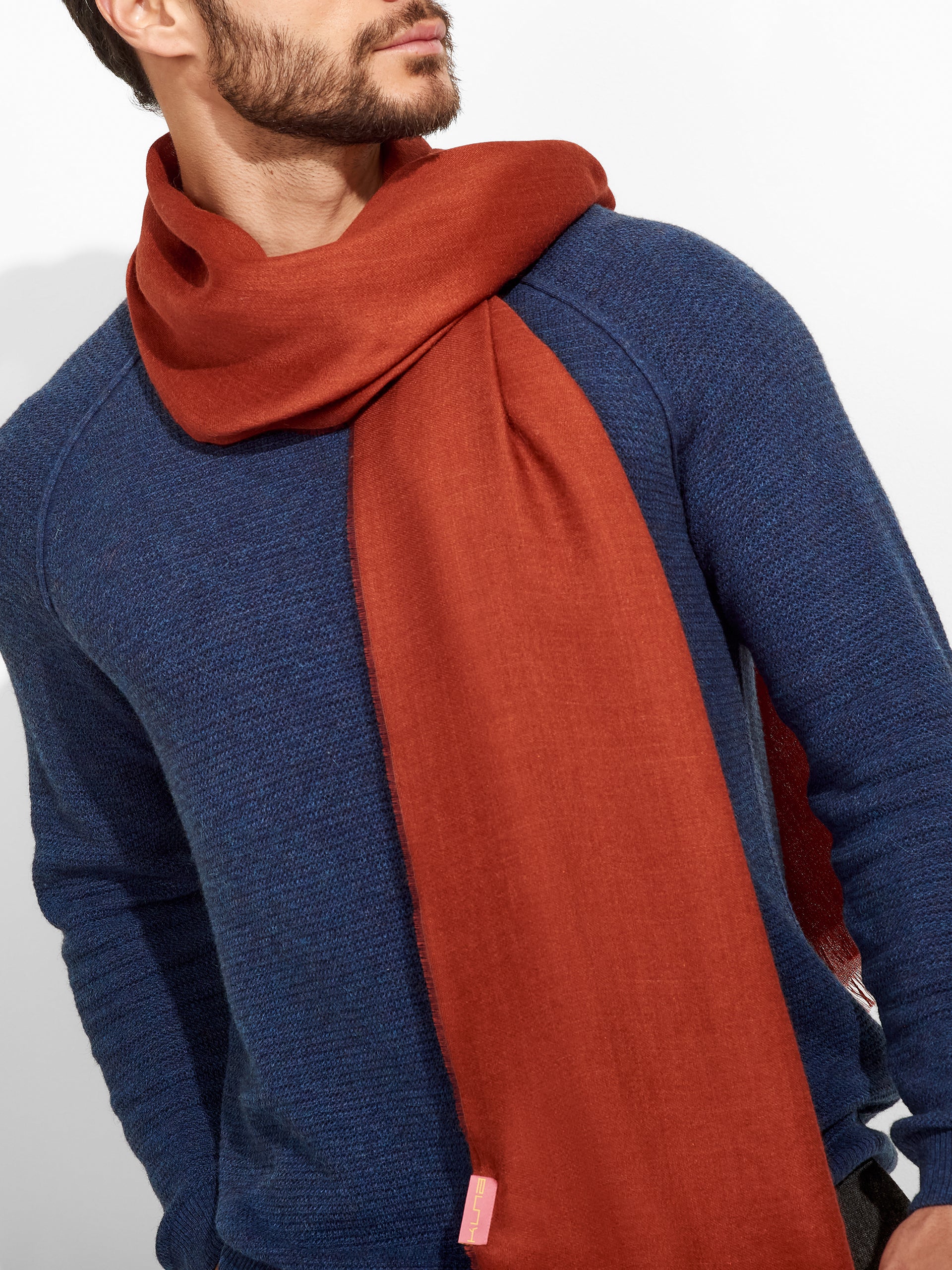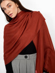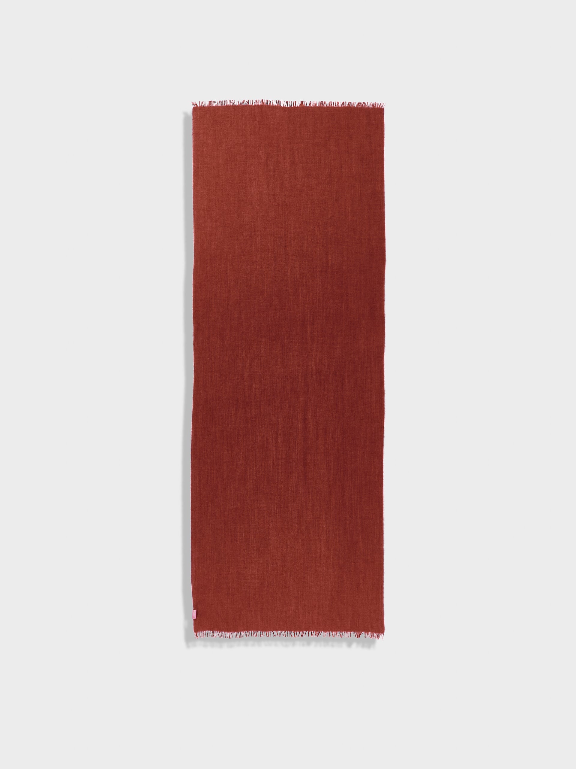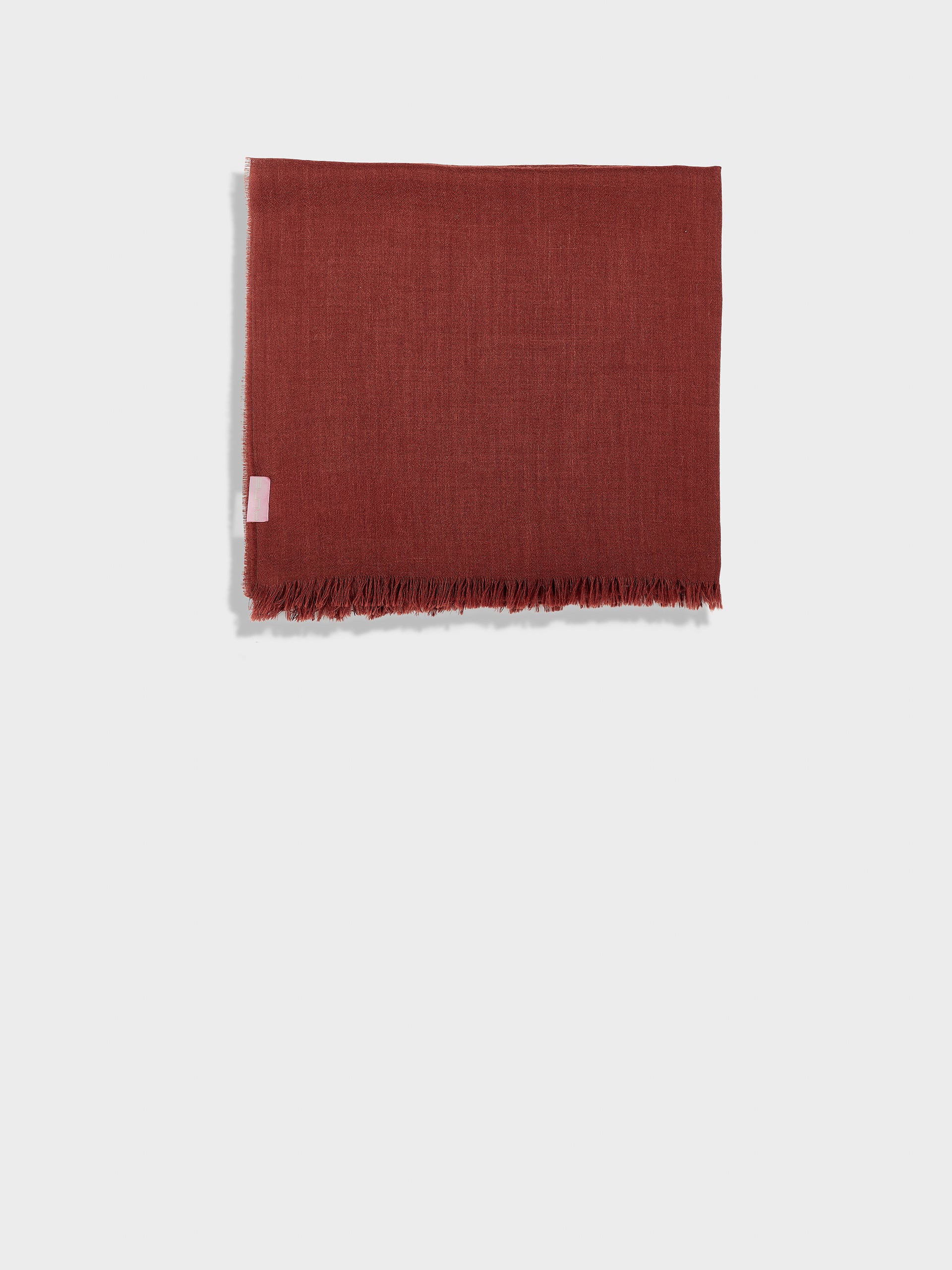 Estola Teaberry en tonalidad marrón, de color entero, presenta bordes con flecos finos que aportan un acabado delicado. Confeccionada en baby alpaca y seda. | Material predominante: Baby Alpaca