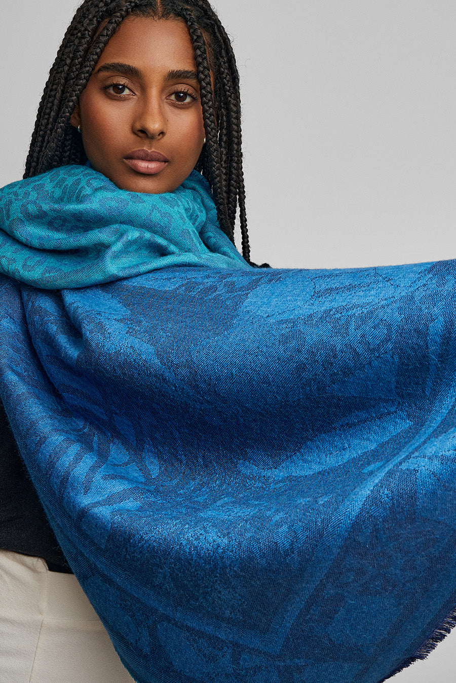 Soft and light stole. Let yourself be wrapped in this delicate garment, an accessory that you will love. The Wuttenberg stole is reversible and is made of baby alpaca and silk. Find this beautiful accessory in 3 colors that will highlight your look. | Main material: Baby Alpaca & Silk