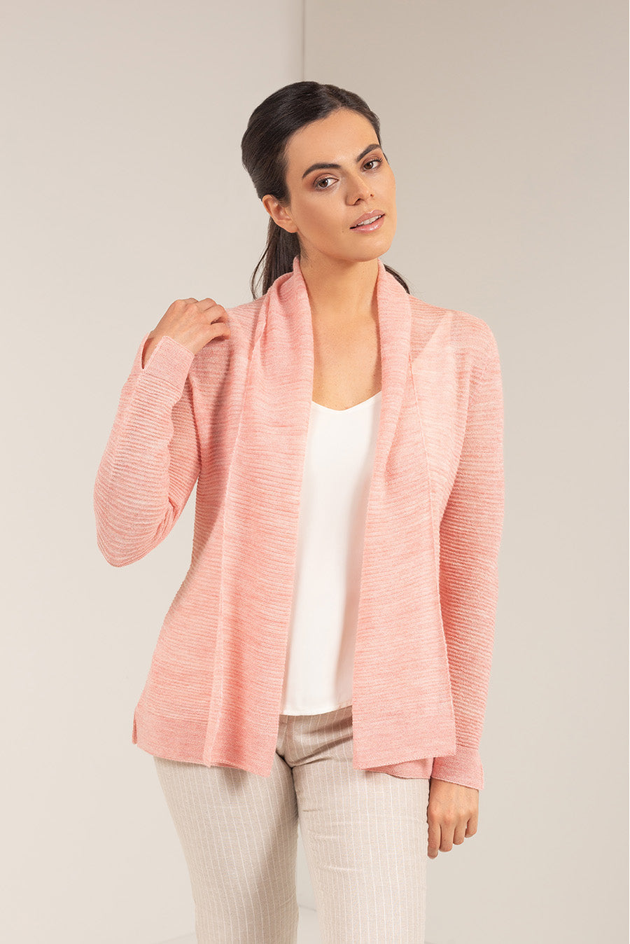 The delicate texture of the fabric ennobles the style of our light and cosy Salvia cardigan, made of baby alpaca and silk. The easy fit and soft texture will make it your favourite piece any time