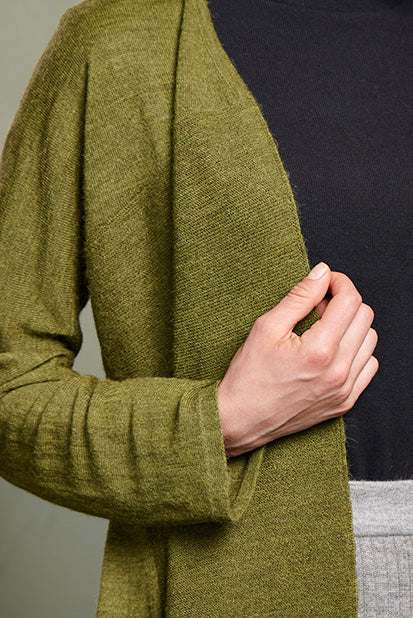 A versatile and warm V-neck cardigan made of baby alpaca fibre, this garment stands out for the combination of delicate elegance and charm in a single piece.