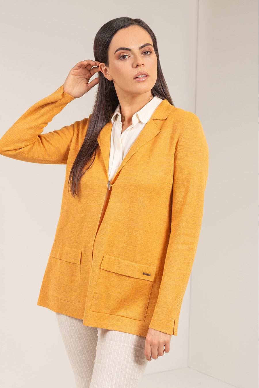 Our Ushi cardigan is one of those pieces that combine with everything. The classic cut and elegant details are perfect to give your looks a sophisticated vibe.