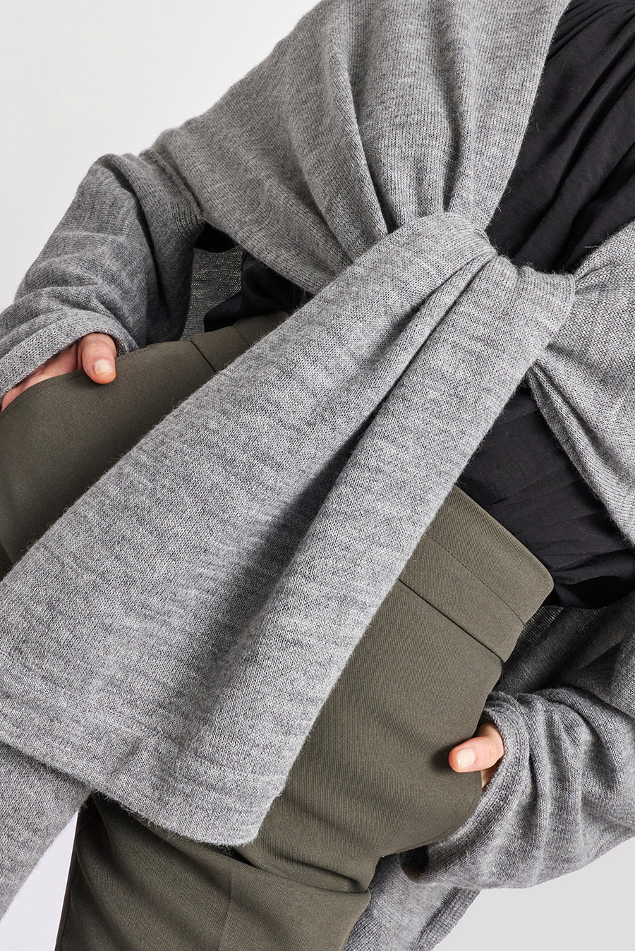 Our Wrap cardigan is available in two timeless hues. The classic design makes it a versatile piece for different occasions. It is made of 100% selected baby alpaca fibres.