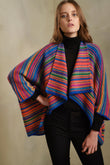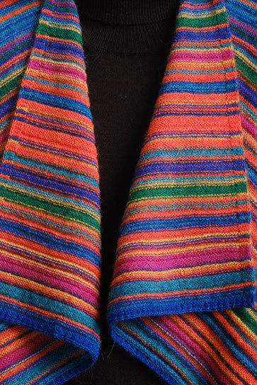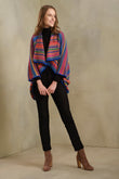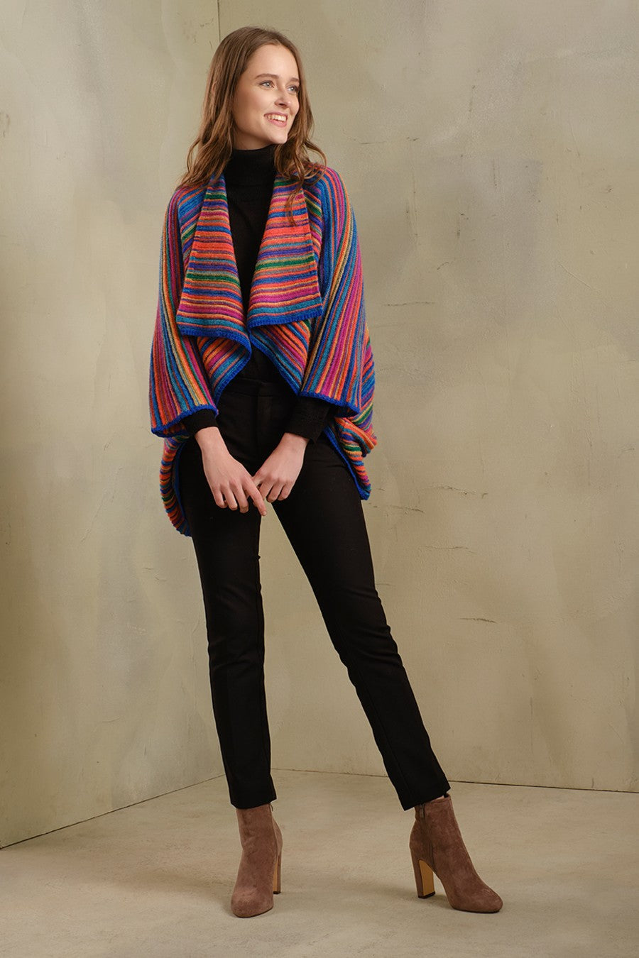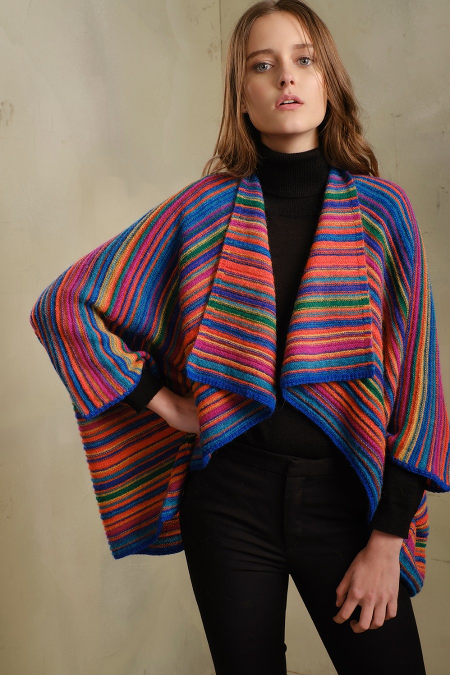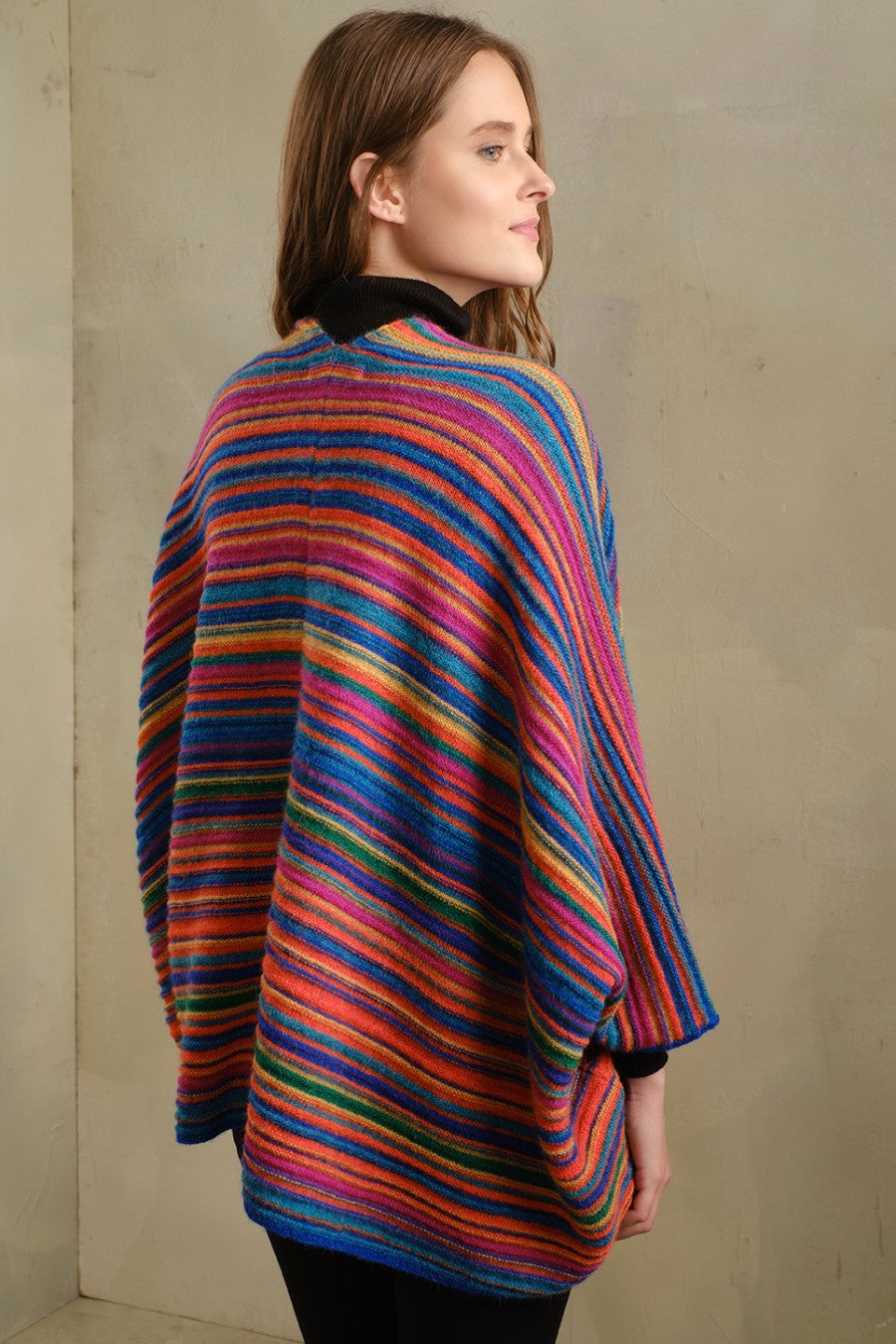 Our baby alpaca Random poncho, with its cleverly combined colours, features an excellent drop with an opening.