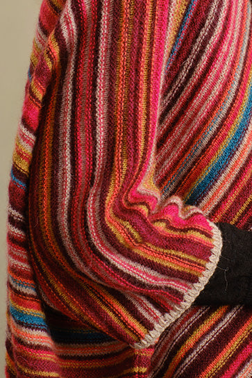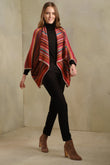 Our baby alpaca Random poncho, with its cleverly combined colours, features an excellent drop with an opening.