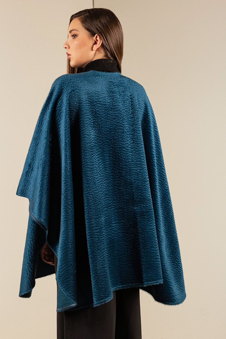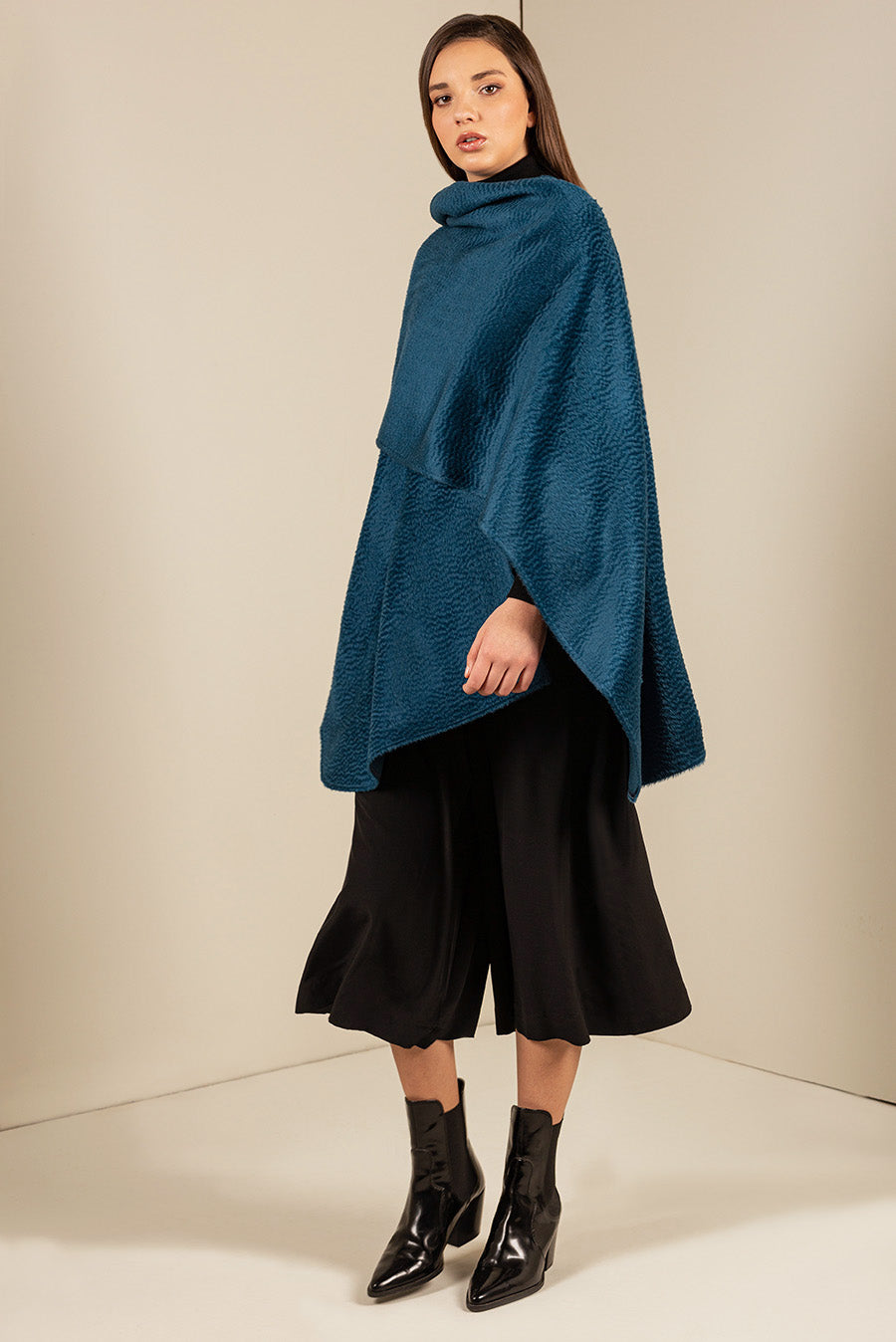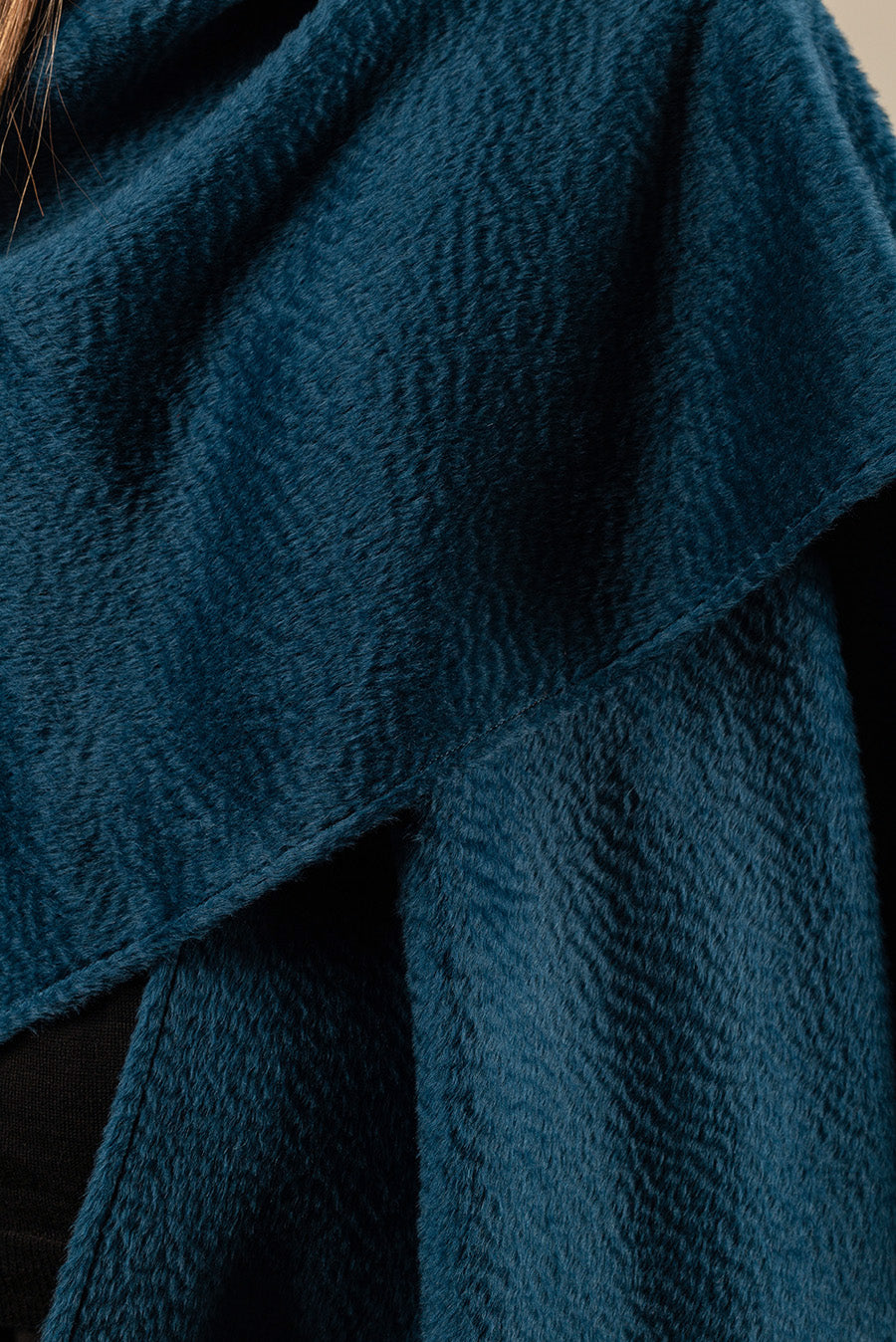 Our sophisticated Uxa cape is made of Suri baby alpaca and wool. The unique drape of this blend makes it an elegant piece, perfect for a posh look.