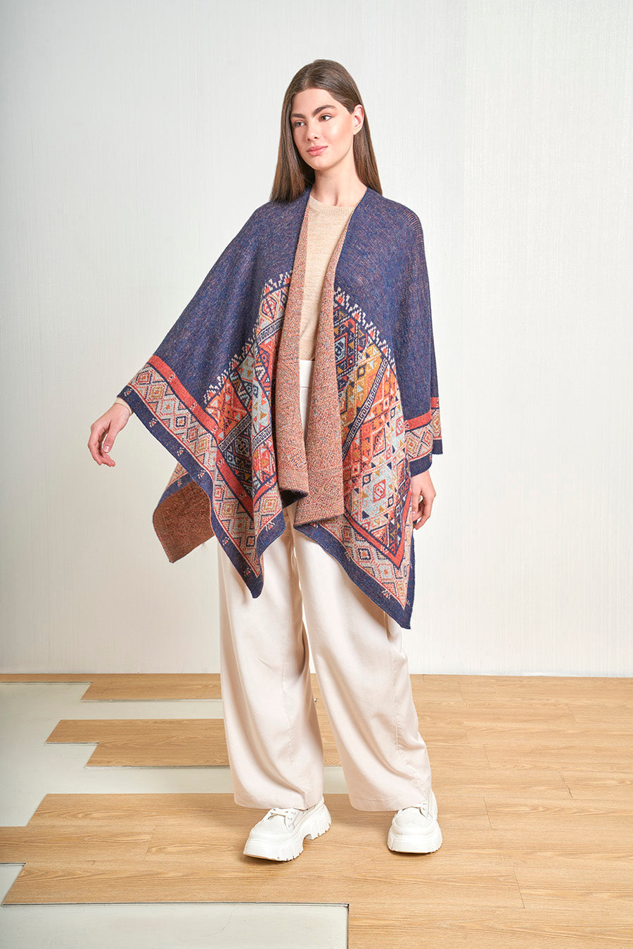 Our Valle cape is made of 100% baby alpaca. The flattering silhouette, rich texture and beautiful shades make it a great alternative to accentuate your casual looks.