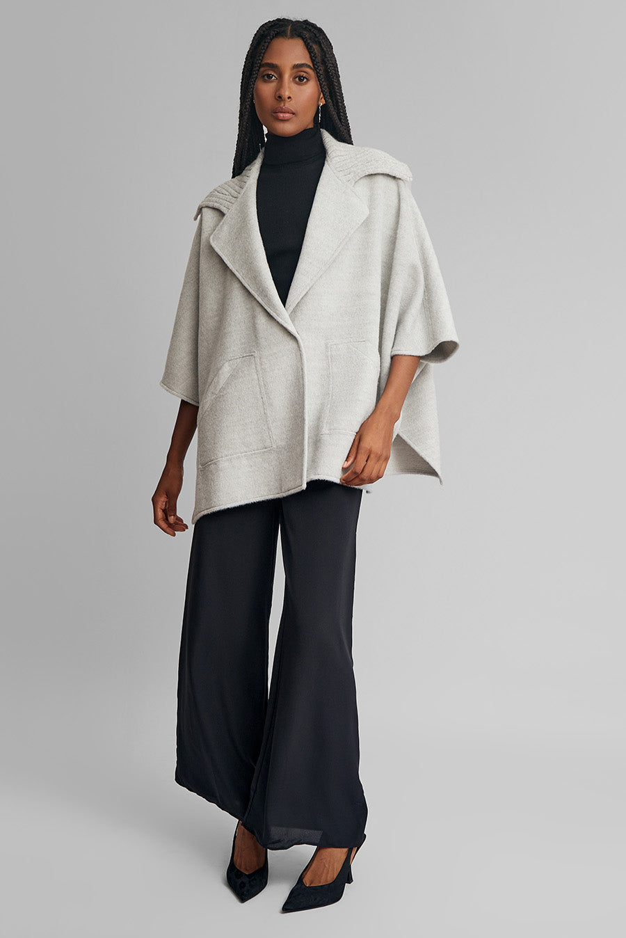Excellence in finishes and superior quality materials come together to give life to our new Whisper cape in baby alpaca and wool. The design of the garment gives you movement and fluidity. | Predominant material: Baby Alpaca
