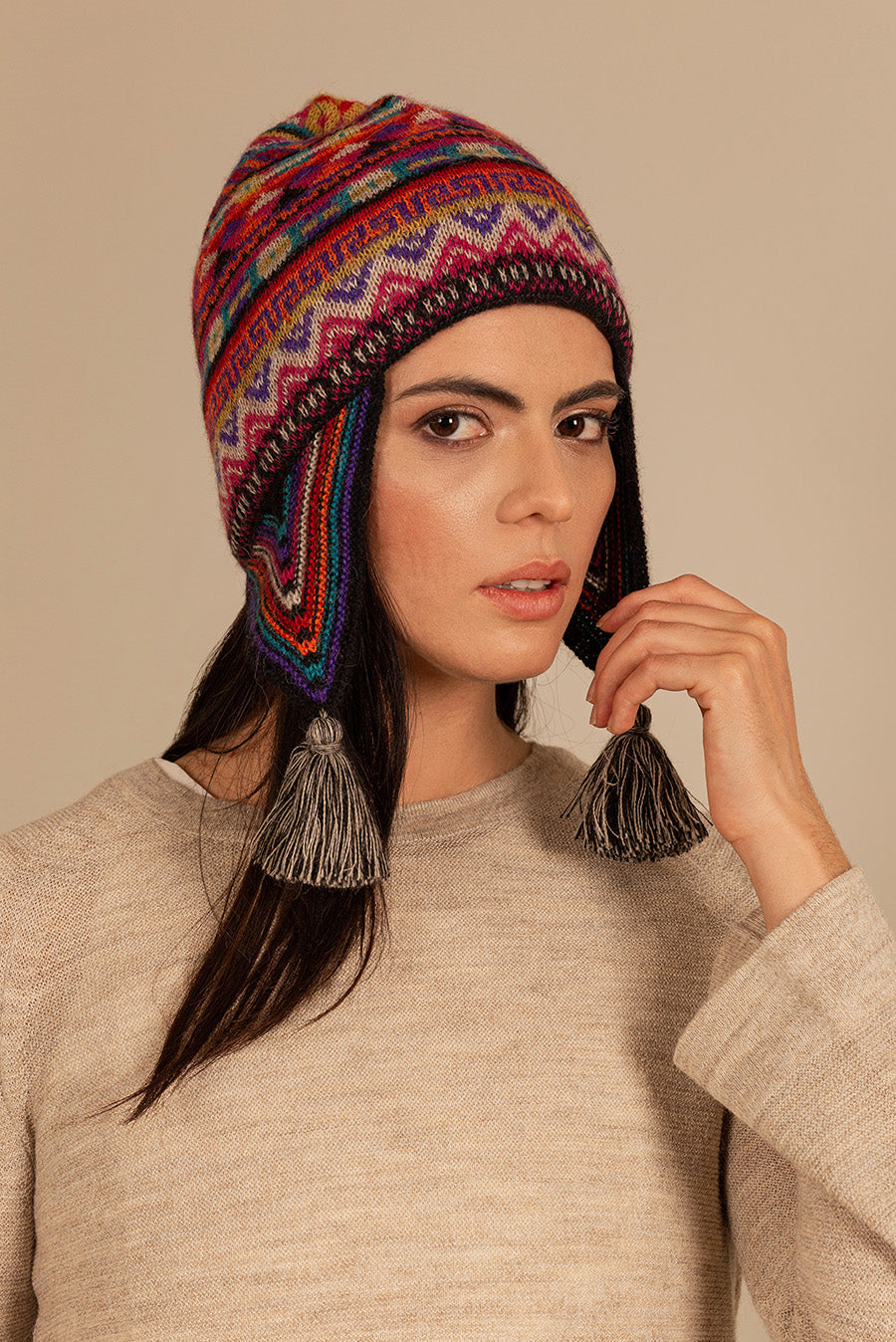 This warm and cosy chullo is the perfect accessory to add a touch of uniqueness to your look this cold season.