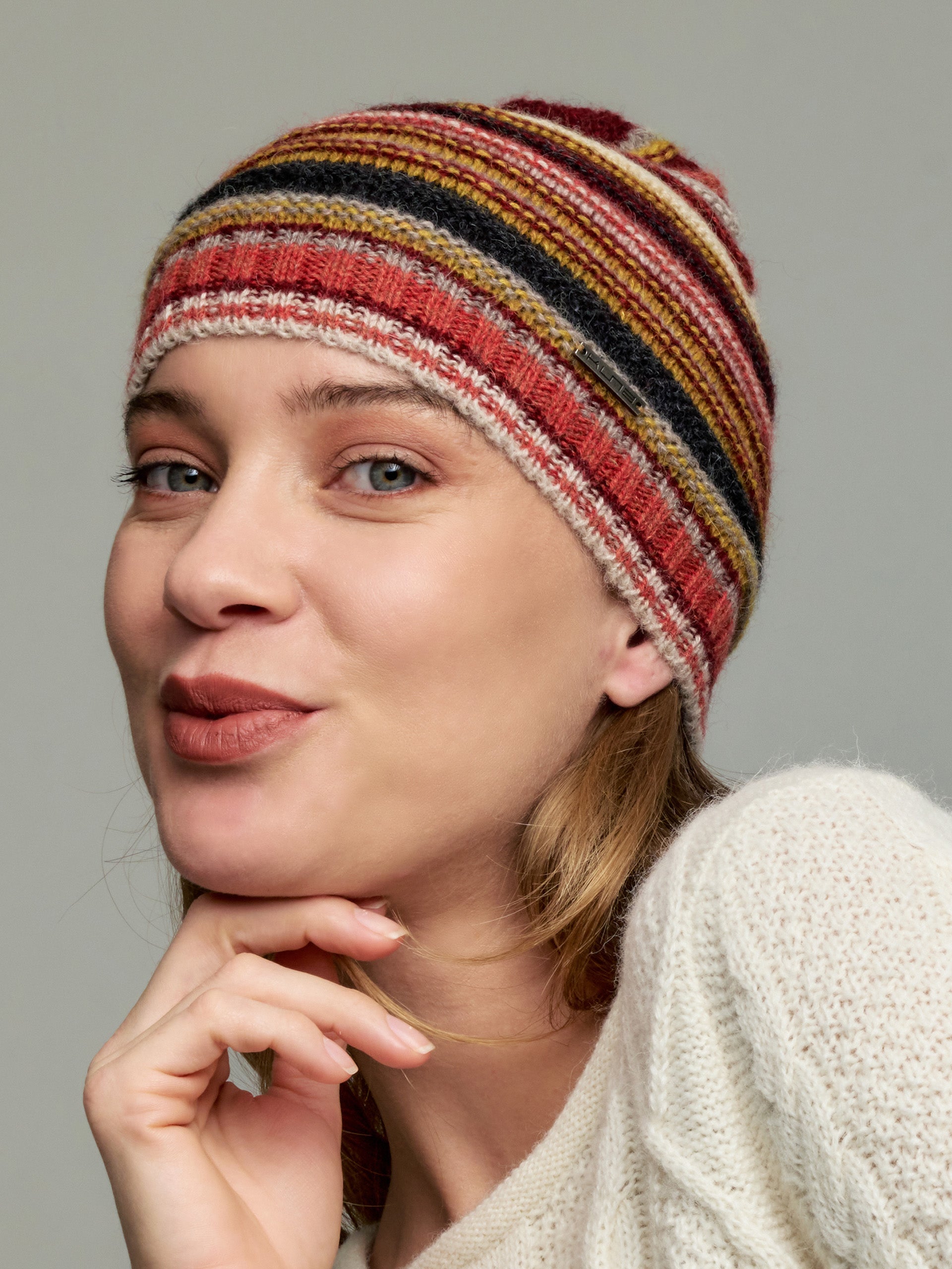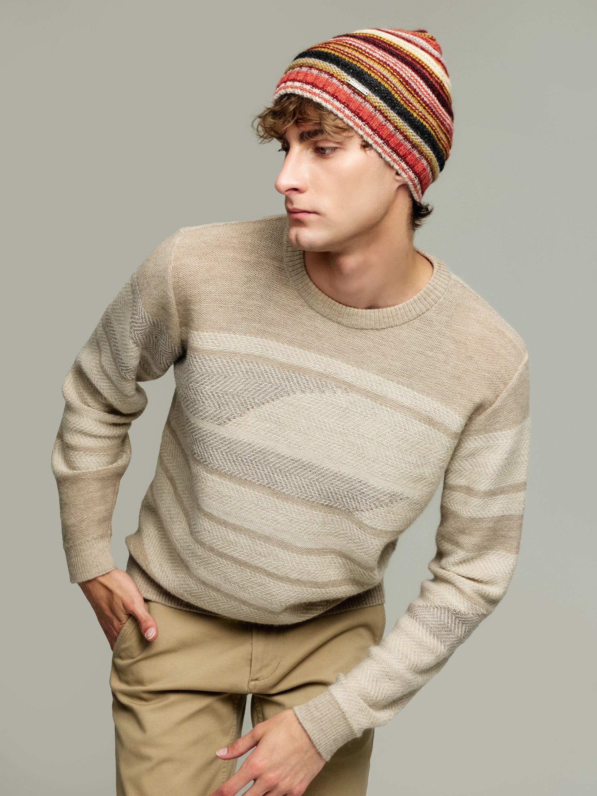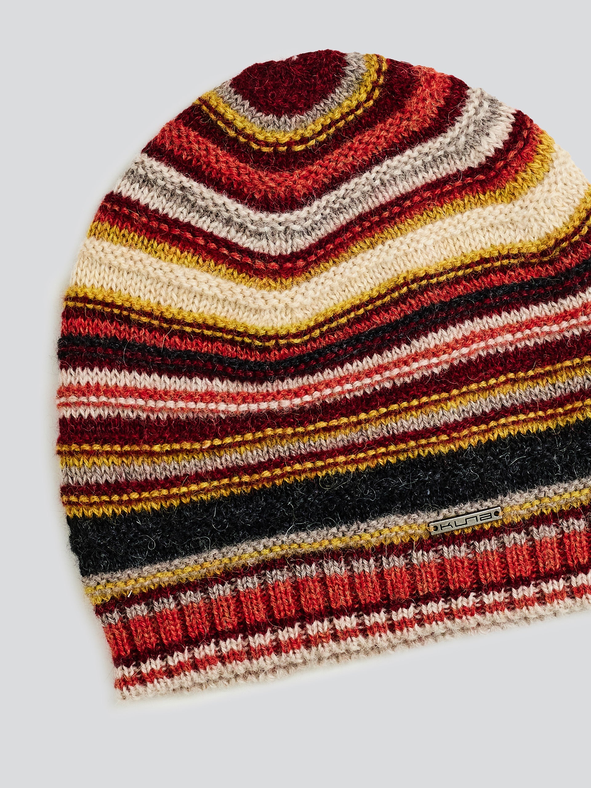 Descubre el gorro Yavoy, una obra maestra en baby alpaca que fusiona lujo y calidad. Su diseño a rayas añade un toque de estilo versátil, elevando cada conjunto. Disponible en tres combinaciones, este accesorio es la expresión perfecta de tu elegancia distintiva. | Material predominante: Baby Alpaca