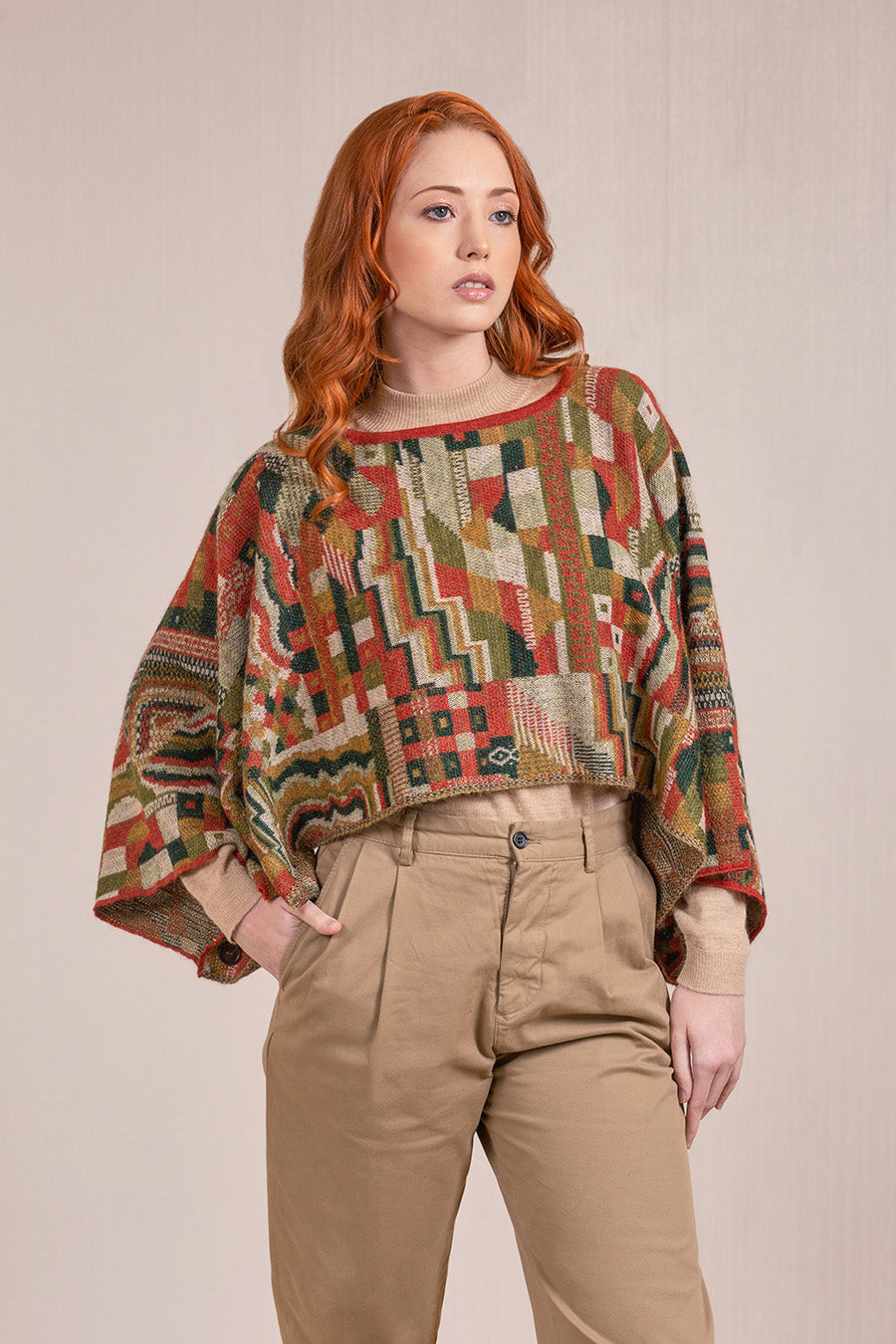 Our Vesubio poncho is an elegant and comfortable garment made of 100% baby alpaca and embellished with an exclusive design, specially created for this collection.