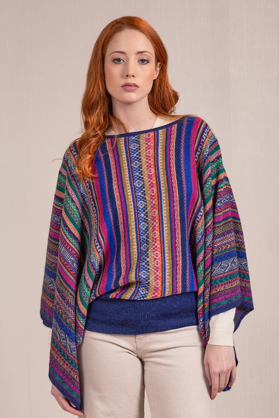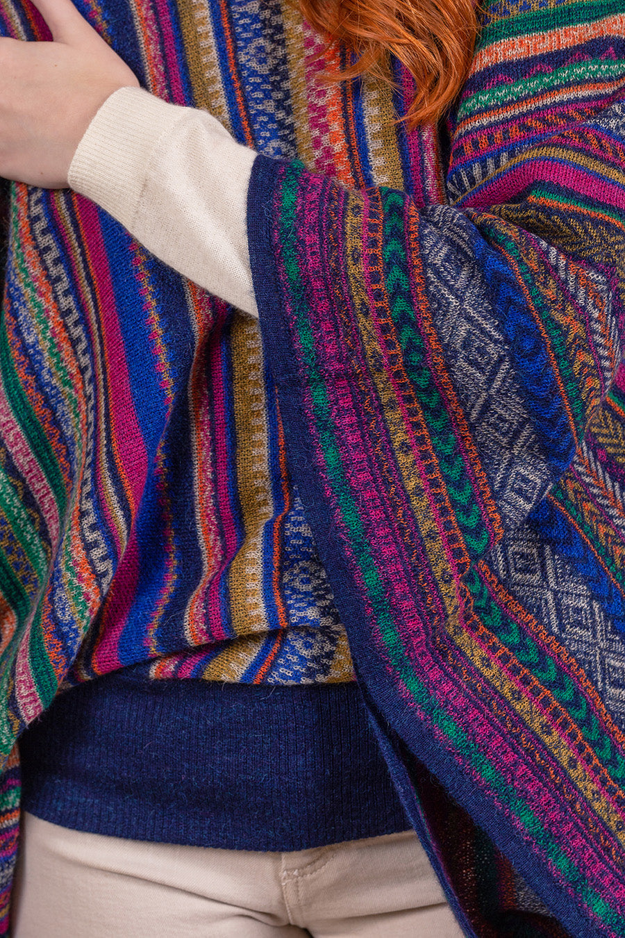 Colourful and feminine, our Vilca poncho is the perfect complement to your winter looks. Made of 100% baby alpaca, it is an incredibly soft piece.