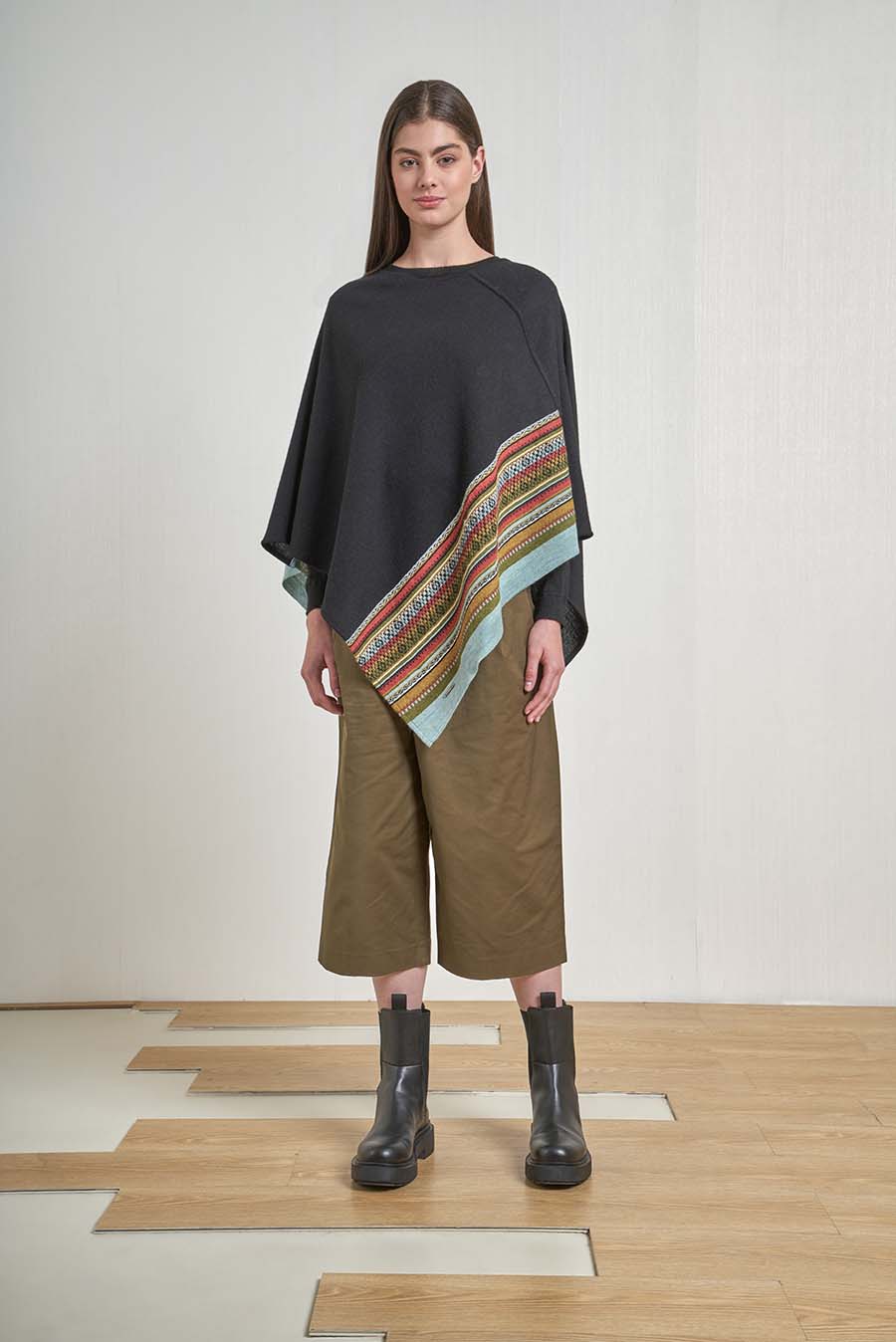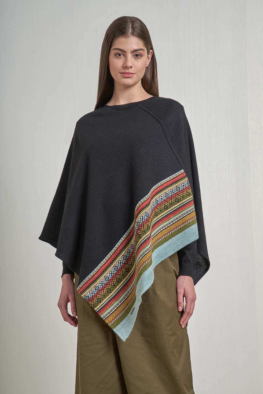 Our Vilcanota poncho is embellished with a unique design, accentuated by the beautiful drape of the fabric. Made of 100% baby alpaca, it is available in a great variety of colours.