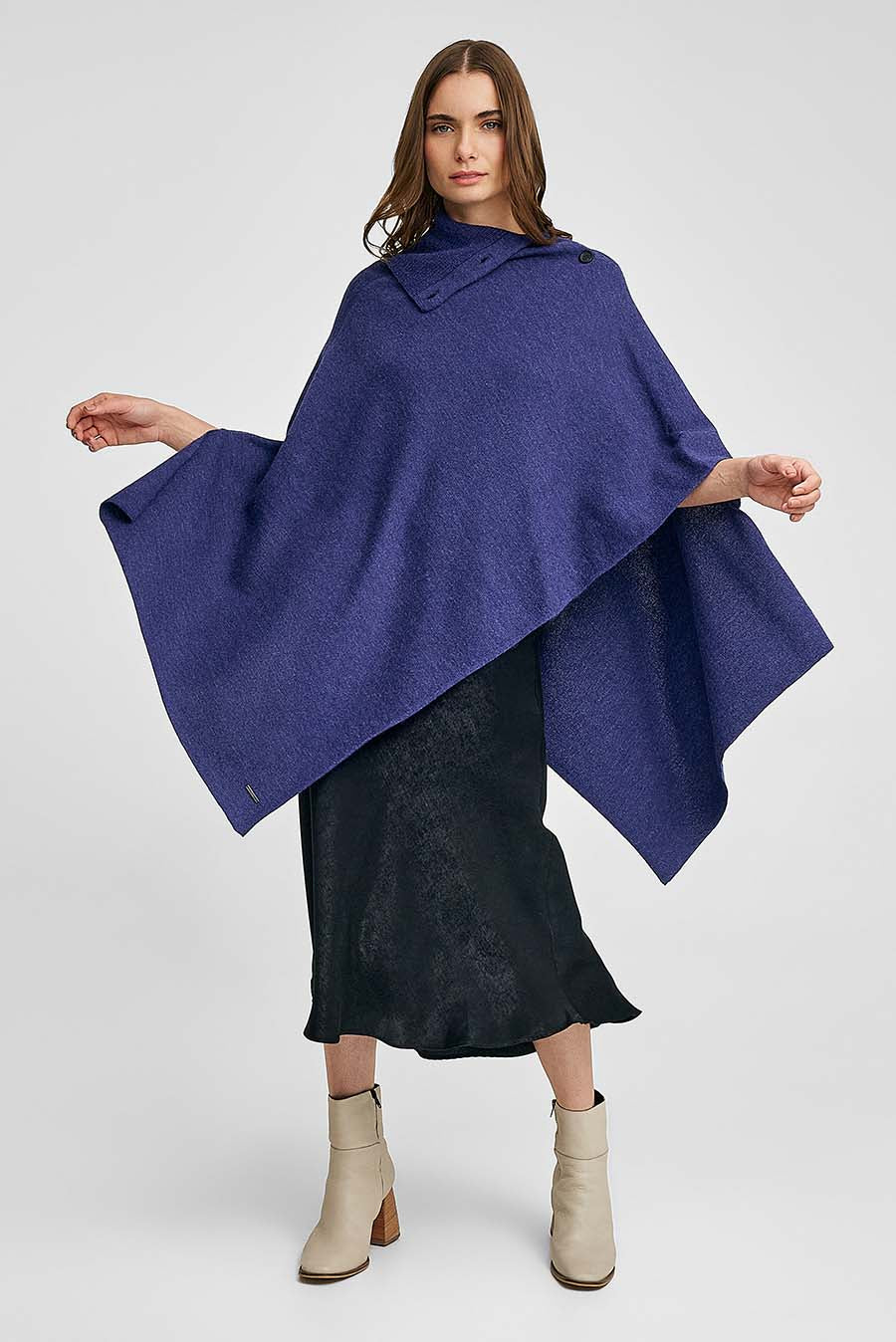 El poncho Wing es una pieza excepcionalmente confeccionada en 100% baby alpaca. Su diseño exclusivo y actual lo convierte en una adición imprescindible para tu guardarropa. El cuello de tortuga en medio, junto con los botones, le otorgan un toque especial y único. Combínalo con diferentes prendas ya sea para ocasiones formales o más casual. | Material predominante: Baby Alpaca