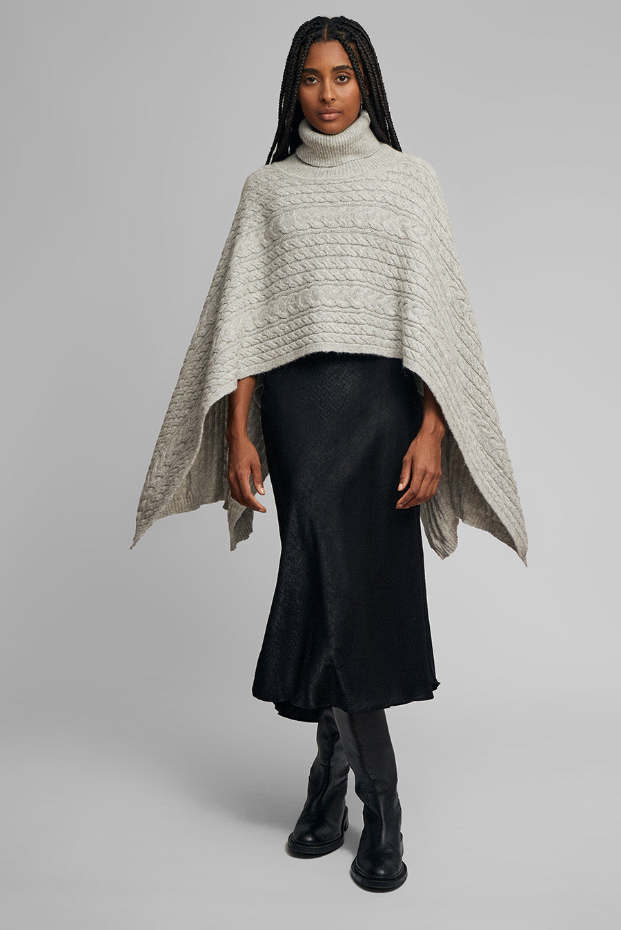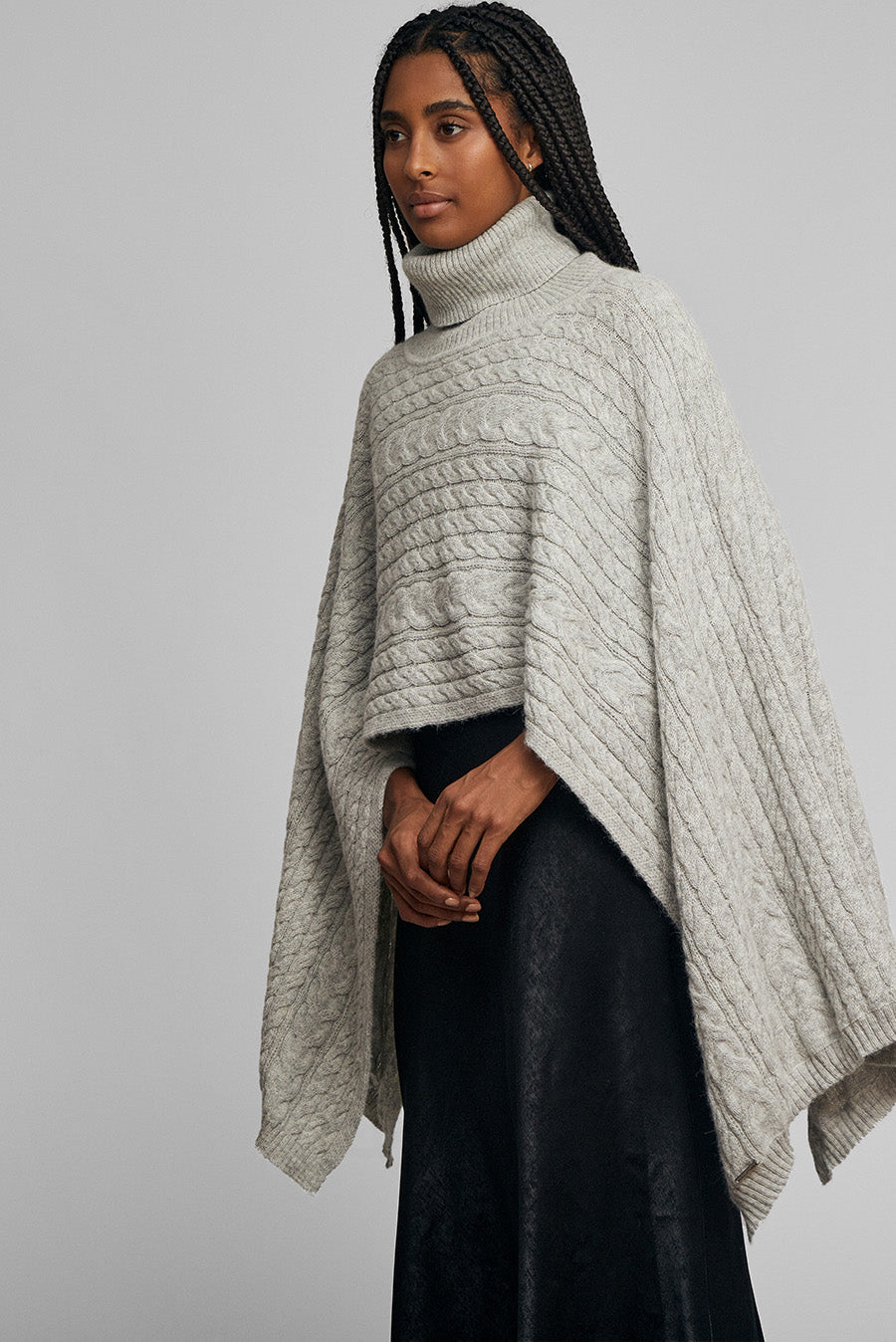 Our Winter poncho is an elegant and comfortable piece. It has a high neck and a unique drape, available in warm tones. | Predominant material: Baby Alpaca