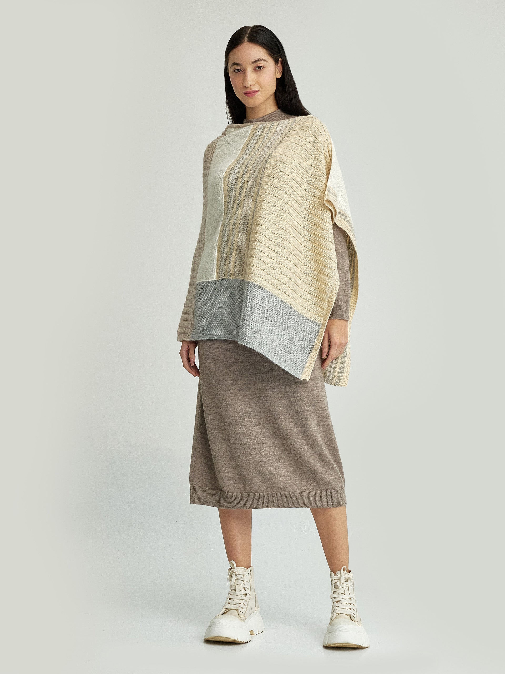 Envuélvete en la suavidad y la calidez del poncho Ysadora, elaborado con hilado 100% baby alpaca. Su diseño versátil lo convierte en la elección perfecta para ocasiones casuales. Confeccionado en colores naturales, este poncho añade un toque de elegancia sutil a cualquier conjunto. Disfruta del estilo que ofrece esta hermosa prenda de alpaca. | Material predominante: Baby Alpaca