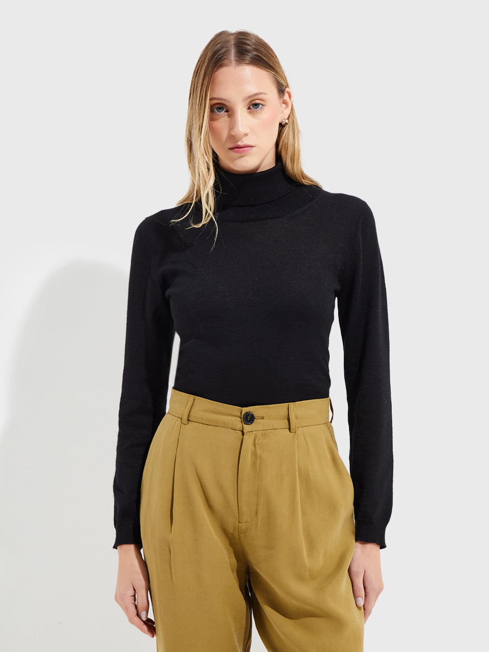 Nada como un suéter de baby alpaca para disfrutar del invierno. Siente la calidez y suavidad del suéter Ysola elaborada con hilado de baby alpaca y seda. Nuestro suéter de cuello tortuga, silueta relajada y color entero será la prenda ideal para salidas casuales. | Material predominante: Baby Alpaca