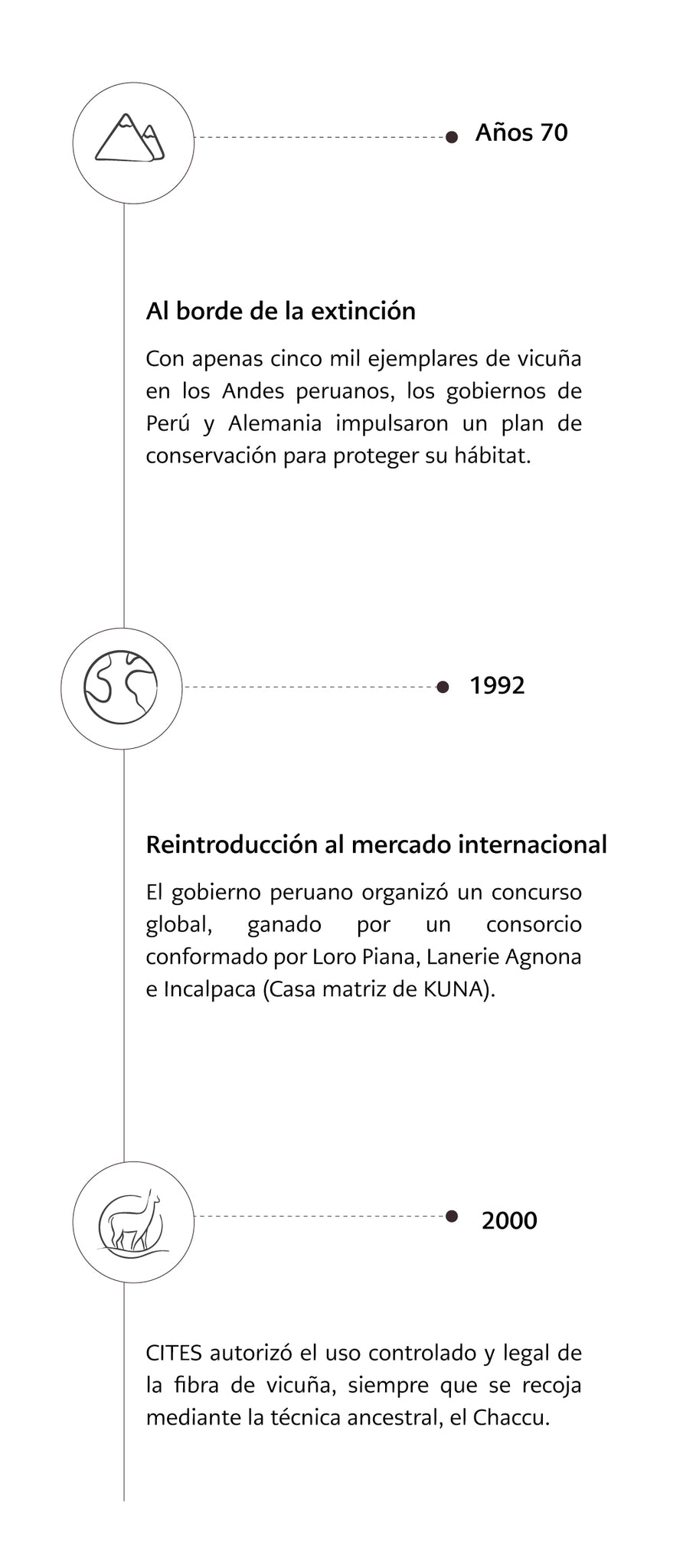 Hoy, KUNA se ha consolidado como la única empresa peruana que transforma la fibra de vicuña en prendas terminadas al 100% en suelo Peruano, bajo estrictos estándares de trazabilidad y sostenibilidad.