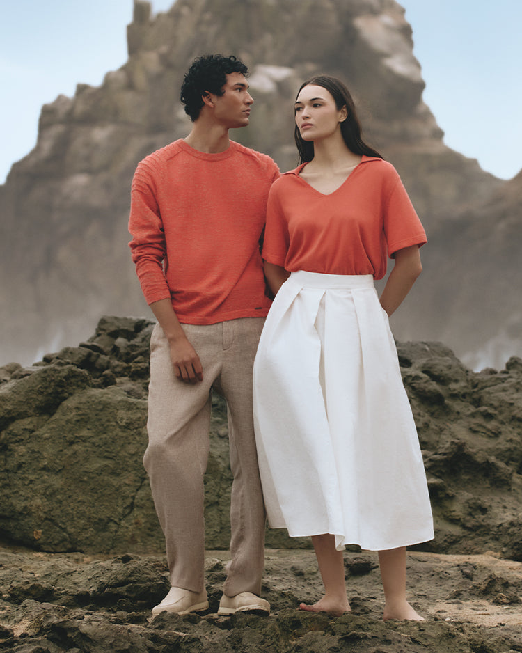 Inspirada en el vaivén del mar y en la pureza de sus formas, la colección Primavera Verano 2026 de KUNA reinterpreta la serenidad del ecosistema marino en piezas de movimiento sutil y natural.