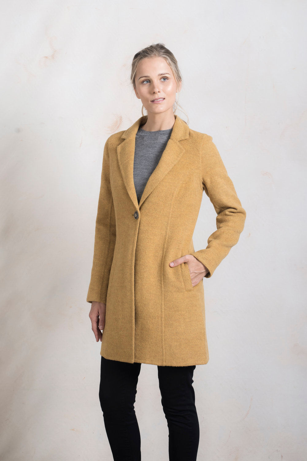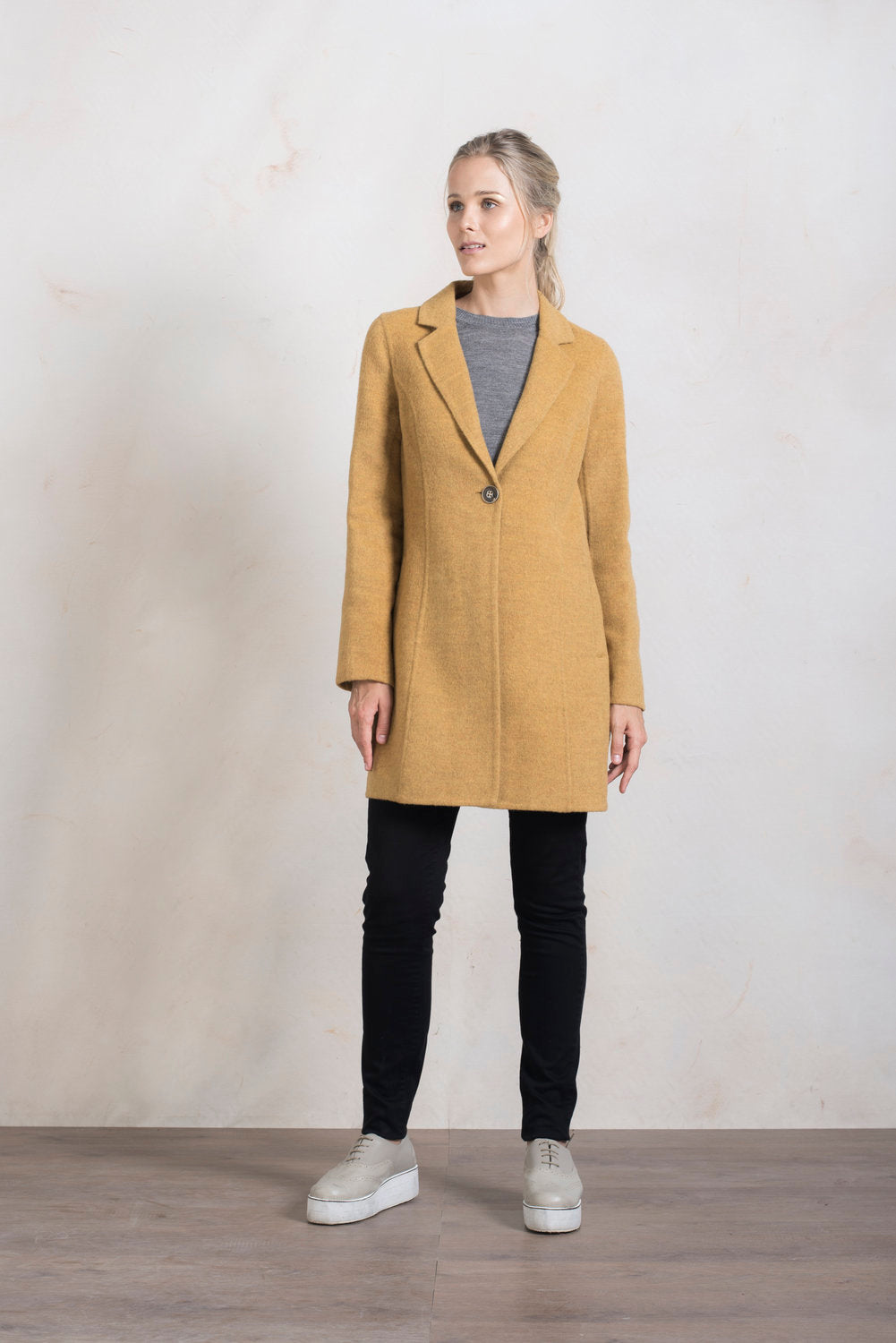 Abrigo Refugio De Baby Alpaca & Lana Color Senape