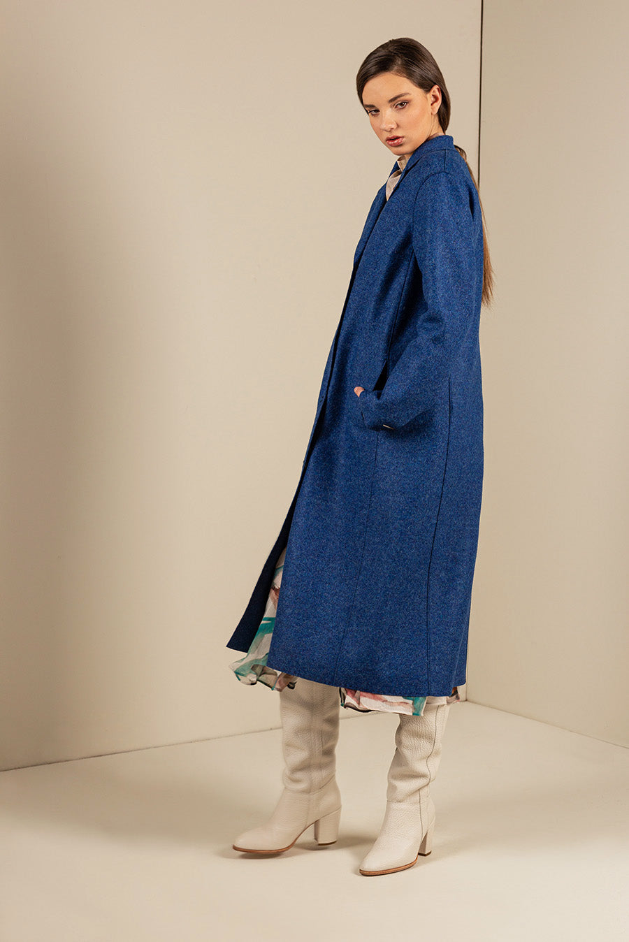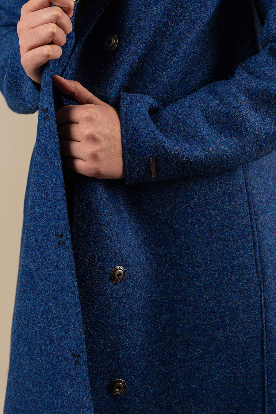 Nuestro maxi abrigo de tela felted cautiva no solo por su vibrante color, sino también por su elegante caída y favorecedor corte. Acabado con broches internos y solapa de cuello clásico. | Material predominante: Alpaca & Lana