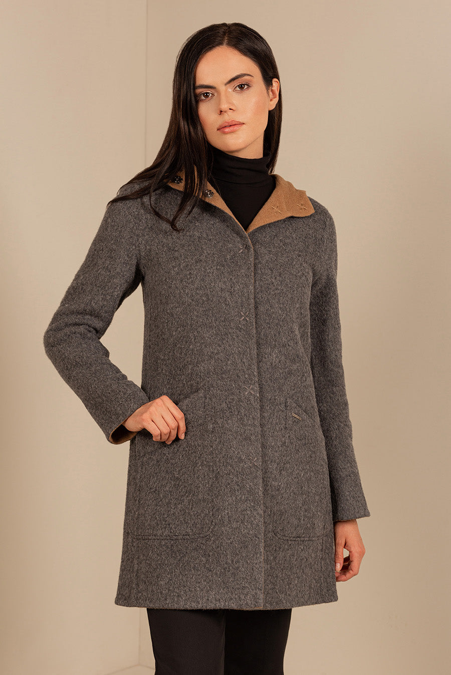Abrigo Uno De Baby Alpaca Color Silex & Camel