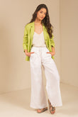 La refinada tela y los detalles con inspiración clásica definen el estilo de este llamativo saco, con una suave textura y vibrante color. Una prenda práctica y ligera que tomara protagonismo cada vez que la uses. | Material predominante: Alpaca & Lana