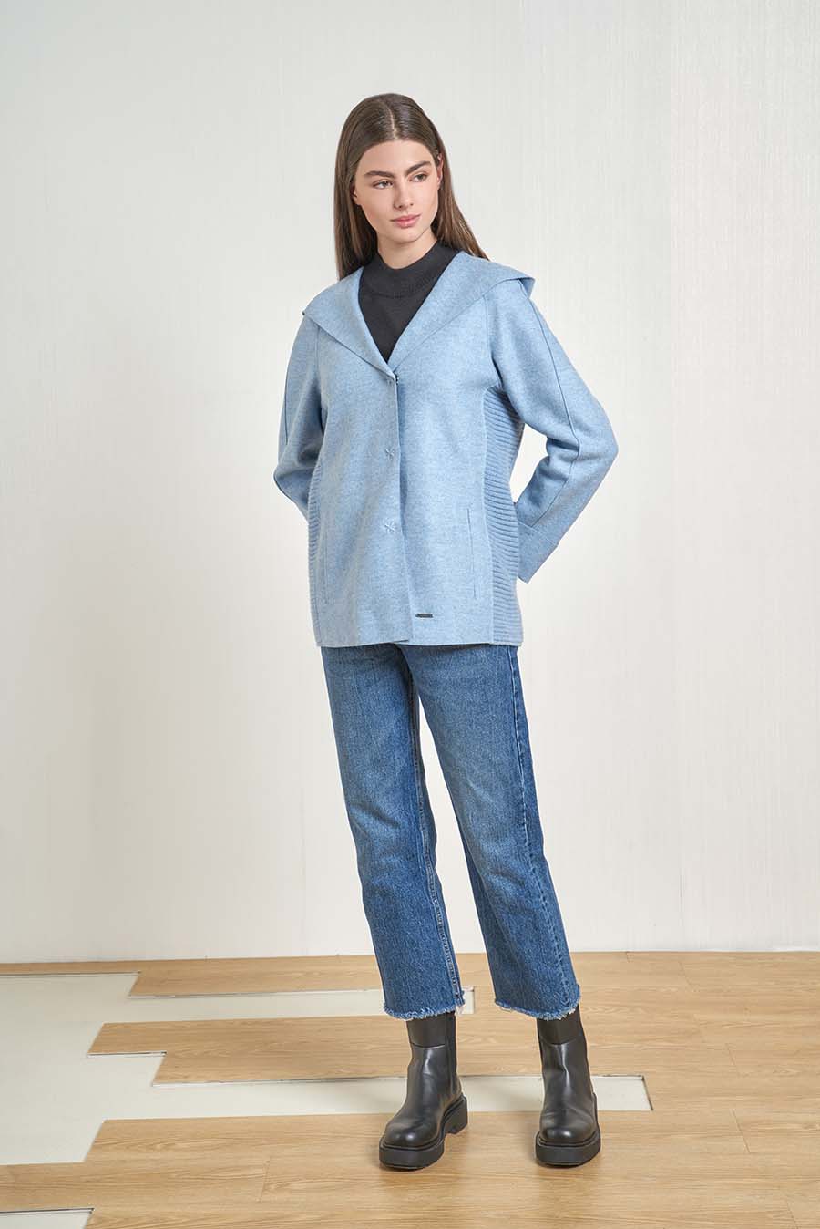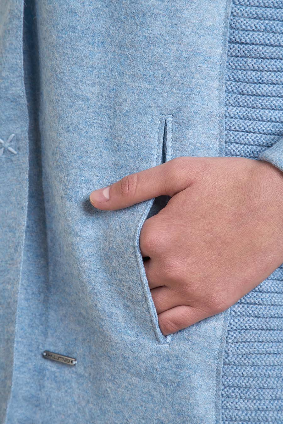 Nuestro saco Valontano ha sido elaborado con tela felted y cuenta con detalles tejidos en los costados. Esta cómoda pieza es perfecta para una reunión o salida casual. | Material predominante: Alpaca & Lana