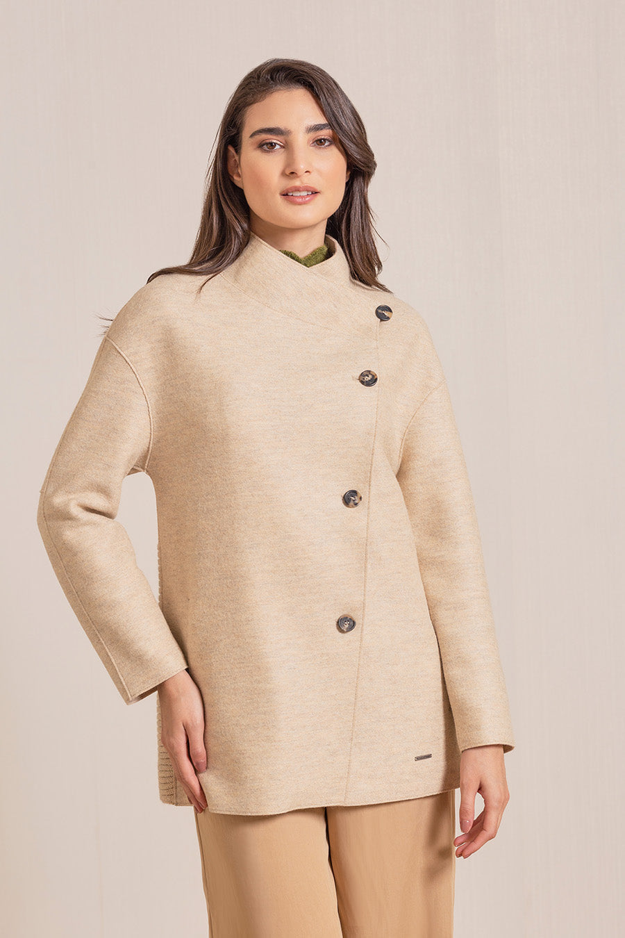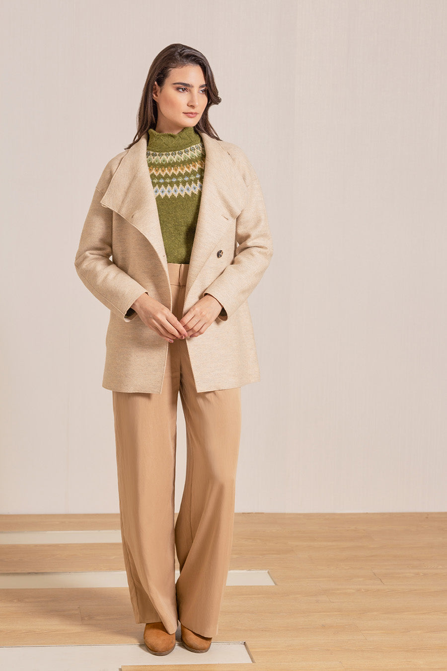 Nuestro saco Vals está elaborado con tela felted, su silueta relajada y detalle tejido en la espalda lo convierte en una pieza infaltable para este invierno. | Material predominante: Alpaca & Lana